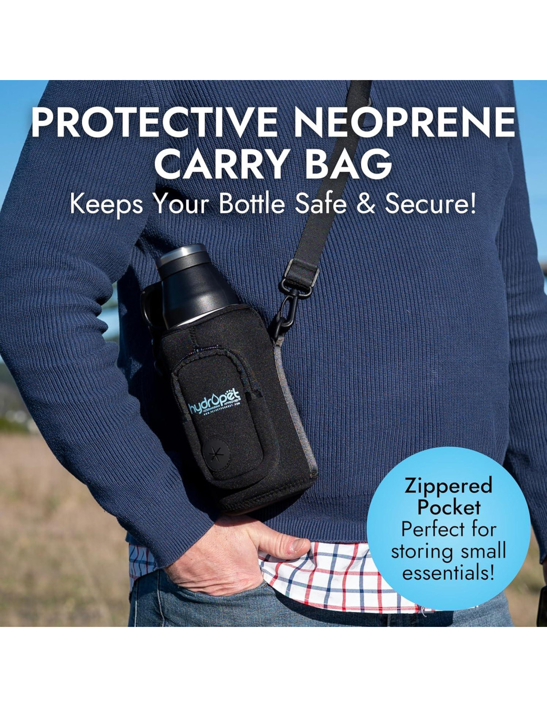 - PORTABILIDAD FÁCIL CON UNA CÓMODA BOLSA DE NEOPRENO - Con su bolsa de neopreno incluida, este conjunto de tazón de comida y agua para perros con tazones para cachorros ofrece la máxima portabilidad. La correa ajustable te permite llevar la botella sin usar las manos. Ya sea que vayas de excursión, te dirijas al parque o viajes, esta ligera botella de agua para perros portátil facilita mantenerse hidratado. La bolsa de neopreno protege la botella y el compartimento con cremallera sostiene bolsas para perros, tu teléfono, billetera y llaves.