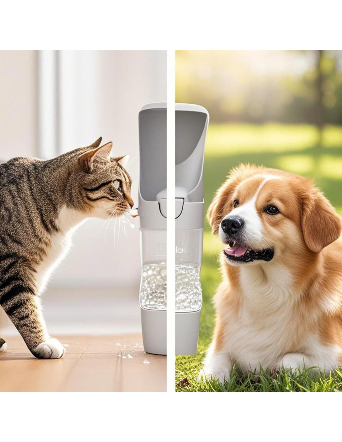 - 1 Revolucionaria Botella de Agua para Perros 2 en 1 Innovación Central: Combina dispensador de agua para perros con almacenamiento de comida. Tapa de un toque activa el tazón de agua para perros de viaje. Solución perfecta de dispensador de tazón de agua para perros para senderismo