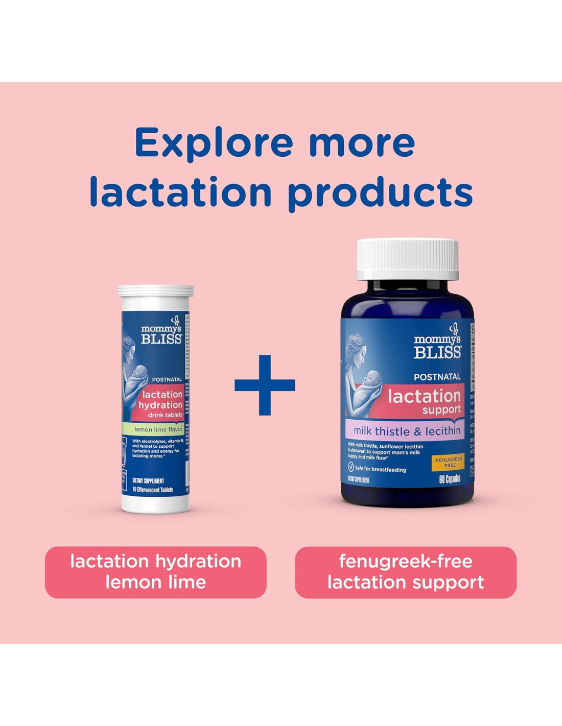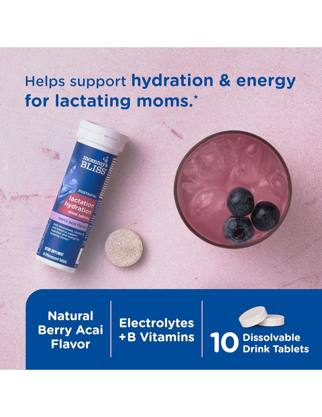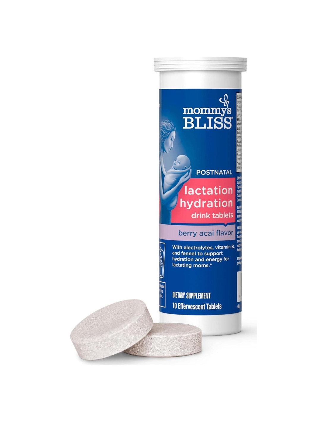 - Apoyo a la Hidratación y Energía para Mamás Lactantes: Las tabletas de hidratación para lactancia de Mommy's Bliss contienen electrolitos, vitaminas B y hinojo para apoyar la hidratación de las mamás lactantes