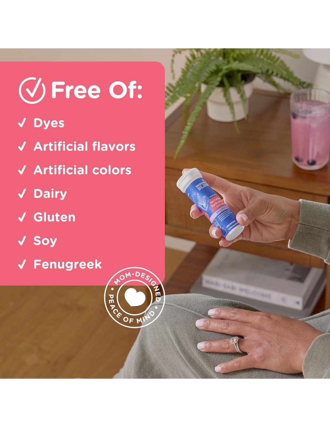 - Sabor Refrescante a Berry Acai: Naturalmente saborizadas y efervescentes, nuestras tabletas de hidratación son una forma deliciosa para que las mamás lactantes se repongan