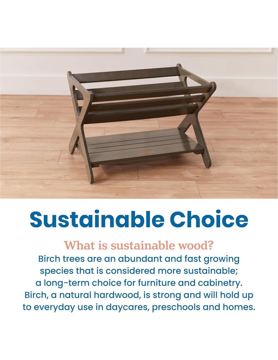 Desde aulas y salas de juegos hasta la primera biblioteca de su pequeño lector, el Caddy de Libros de Abeto con Estante es un elemento de almacenamiento multipropósito esencial. Este caddy de madera cuenta con un espacioso almacenamiento interior en ángulo para una colección de libros y animales de peluche y un estante inferior que se puede usar para almacenar juguetes pequeños. Su perfil bajo y amigable para los niños fomenta la autoayuda, ya sea al tomar su historia favorita o al ordenar. Este estante para libros ofrece almacenamiento conveniente en cualquier entorno y ayuda a construir buenos hábitos de organización. Los mangos recortados en los lados hacen que este caddy ligero sea fácil de mover y transportar. Cuando los niños superen la estantería, colóquela junto a un sofá en la sala de estar para sostener revistas y libros de mesa de café. Construido con contrachapado de abeto cosechado de manera sostenible con un acabado duradero que sella la superficie de la madera y resiste arañazos. Un inhibidor de UV ayuda a los muebles a resistir la luz ultravioleta y el amarillamiento. El contrachapado de abeto natural es extremadamente duradero y soportará el uso diario en entornos de primera infancia. El caddy llega listo para ensamblar y requiere un ensamblaje mínimo por parte de un adulto.