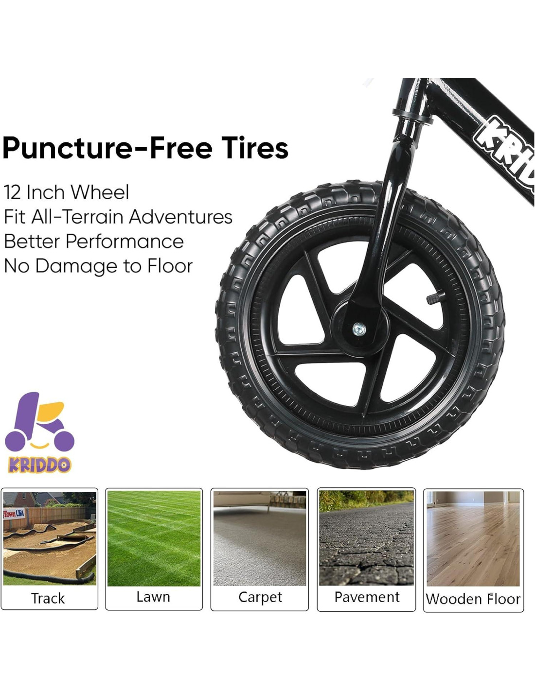 - NEUMÁTICOS EXTRA GRUESOS PARA TODO TIPO DE TERRENO - Queremos que los niños se sientan fuertes y estables cuando se mueven sobre césped y aceras, por lo que añadimos neumáticos resistentes a pinchazos en la parte delantera y trasera de cada bicicleta de equilibrio para niños de 5 años y de 18 meses.