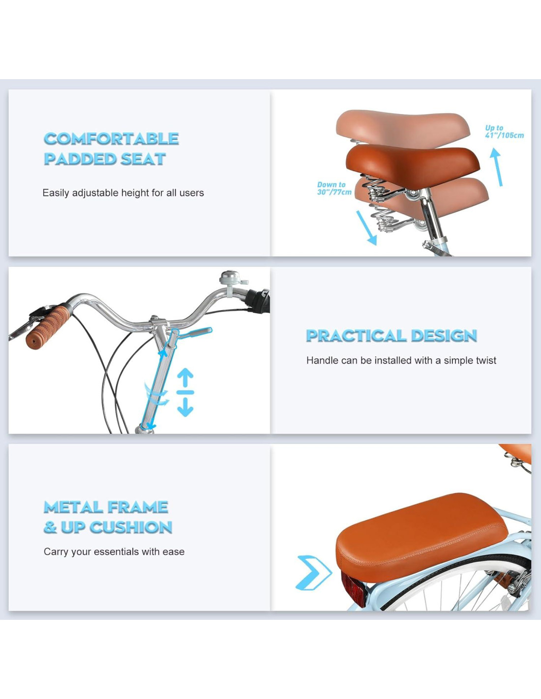 - CONDUCCIÓN VERSÁTIL - Adecuada para varios terrenos y estilos de conducción, esta bicicleta ofrece una experiencia de conducción versátil. Ya sea que prefieras un paseo tranquilo en el parque o un trayecto más desafiante por las calles de la ciudad, puede satisfacer tus necesidades. Combina funcionalidad con estilo y disfruta de la libertad de andar en bicicleta