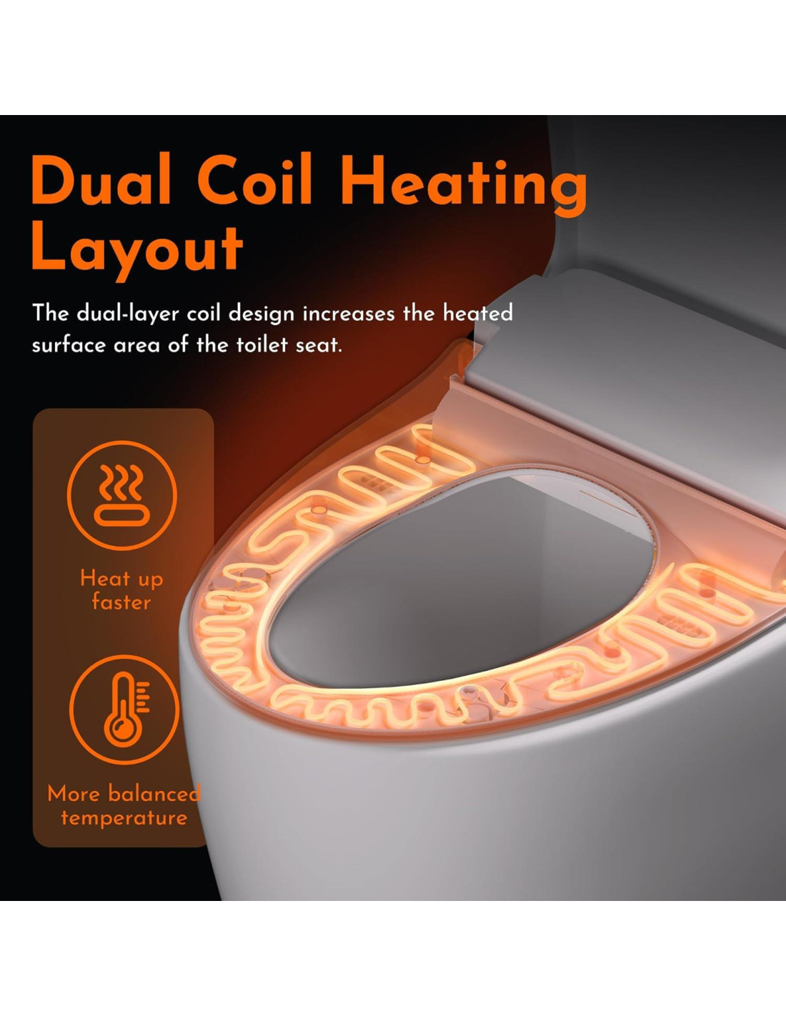 - Mejor tecnología de calefacción: Bidet calefaccionado con una disposición de bobina de calefacción más razonable para proporcionar más calor a las caderas y los muslos y sentirse más cómodo al sentarse (100% igual que nuestras imágenes). Tres configuraciones de calefacción ajustables (93F (33,9C) / 97F (36,1C) / 104F (40C)) aseguran obtener una temperatura cómoda en la configuración más baja, y el consumo de energía más bajo de 20W es muy económico, despídete del asiento frío de ahora en adelante.