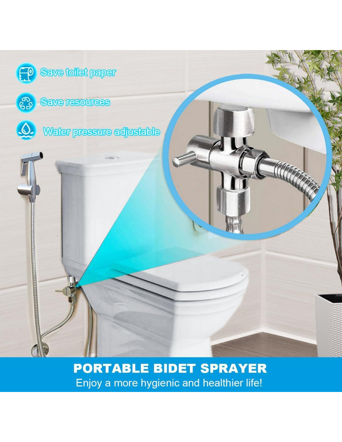 - [Fácil de Montar] : Este juego de rociador de bidet para baño se puede montar tanto en el tanque del inodoro como en la pared. Ahorra espacio en tu baño y papel higiénico. Instalación simple, terminada en solo 5 minutos. Viene con todos los componentes de instalación necesarios, no se necesita plomero, fácil de montar en 5 minutos.