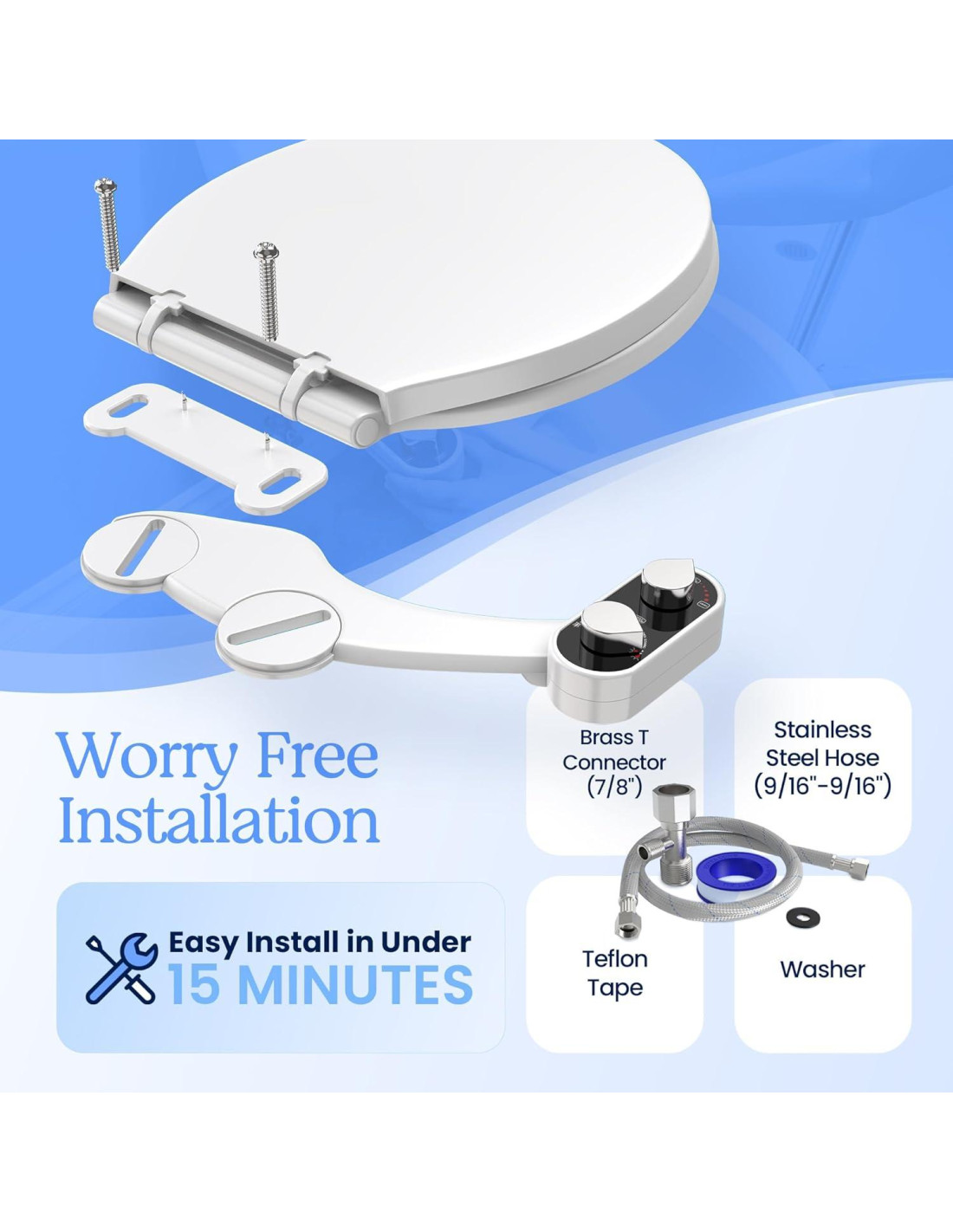 - INSTALACIÓN FÁCIL EN MINUTOS - No se requiere fontanero ni electricidad. Nuestro accesorio de bidet para inodoro incluye todo lo necesario para una instalación rápida y sencilla en solo 15 minutos. Se adapta a la mayoría de los inodoros