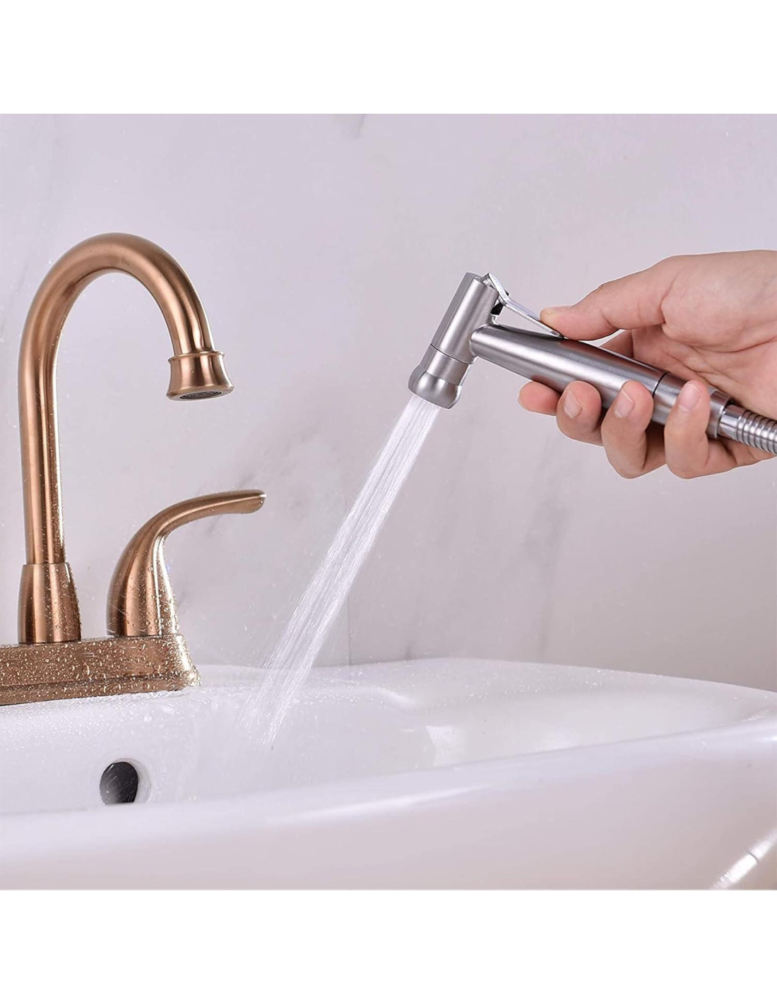 - Cabezal de Rociador de Bidet: El diseño flexible de mano te brinda una experiencia de limpieza más conveniente y cómoda. Puedes controlar la dirección y el ángulo de manera flexible para satisfacer tus diferentes necesidades