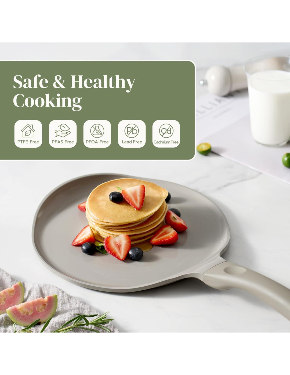 - Revestimiento Cerámico Antiadherente: La sartén para crepes antiadherente de Redchef es libre de PFAS y PTFE y PFOA, plomo, cadmio que pueden filtrarse en tu comida, haciéndola segura para ti y tu familia.