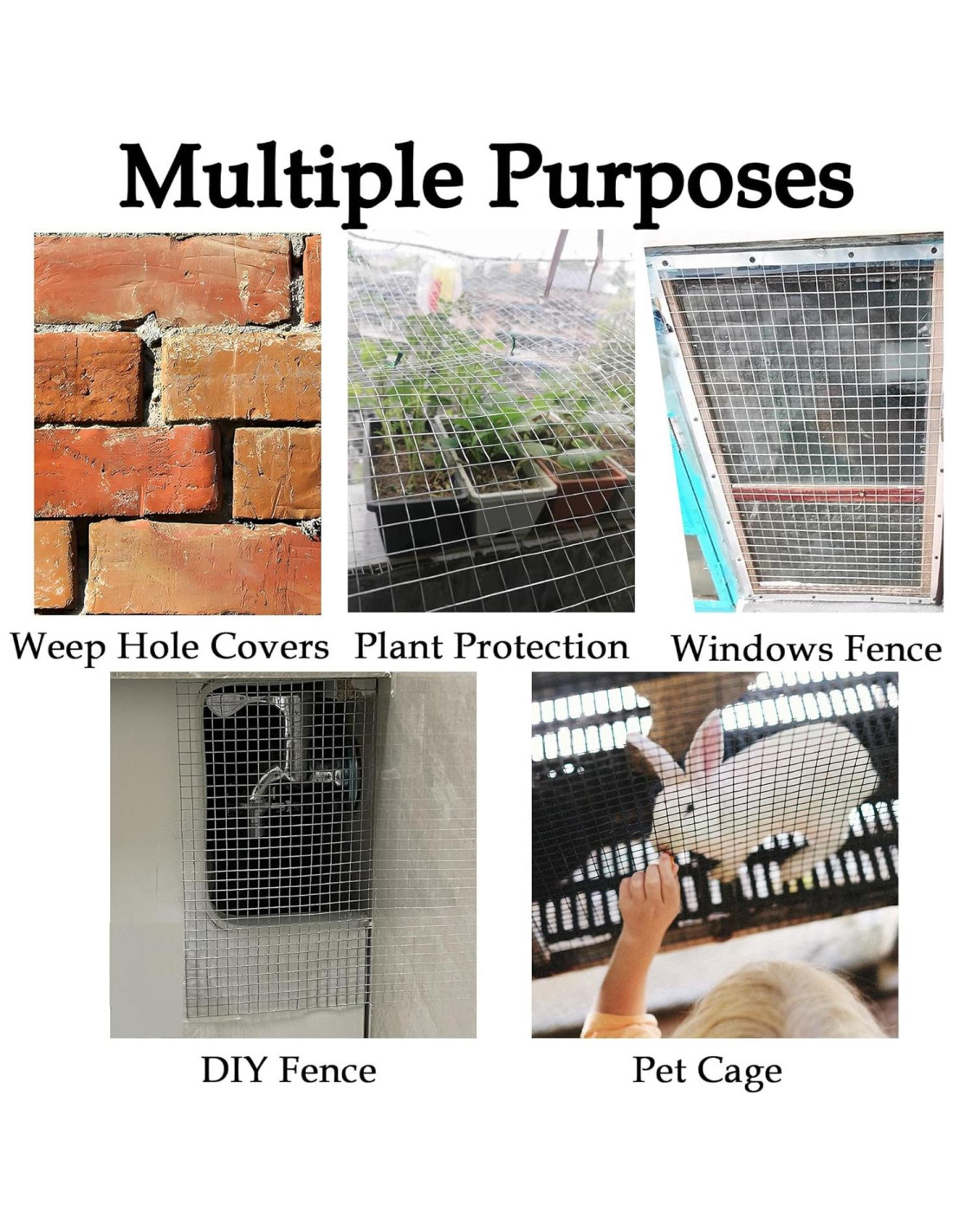 - Multipropósito Nuestra malla de hardware es adecuada para cercas de gallineros u otras cercas para aves de corral, cercas para conejos/gatos/perros, cercas de protección contra serpientes y ratas en el patio trasero, camas de flores en el jardín, tableros de protección de árboles en huertos, pantallas de suelo, protección de balcones, canaletas, aleros, barandillas de canaletas, trabajos de decoración del hogar, fabricación de artesanías, etc.
