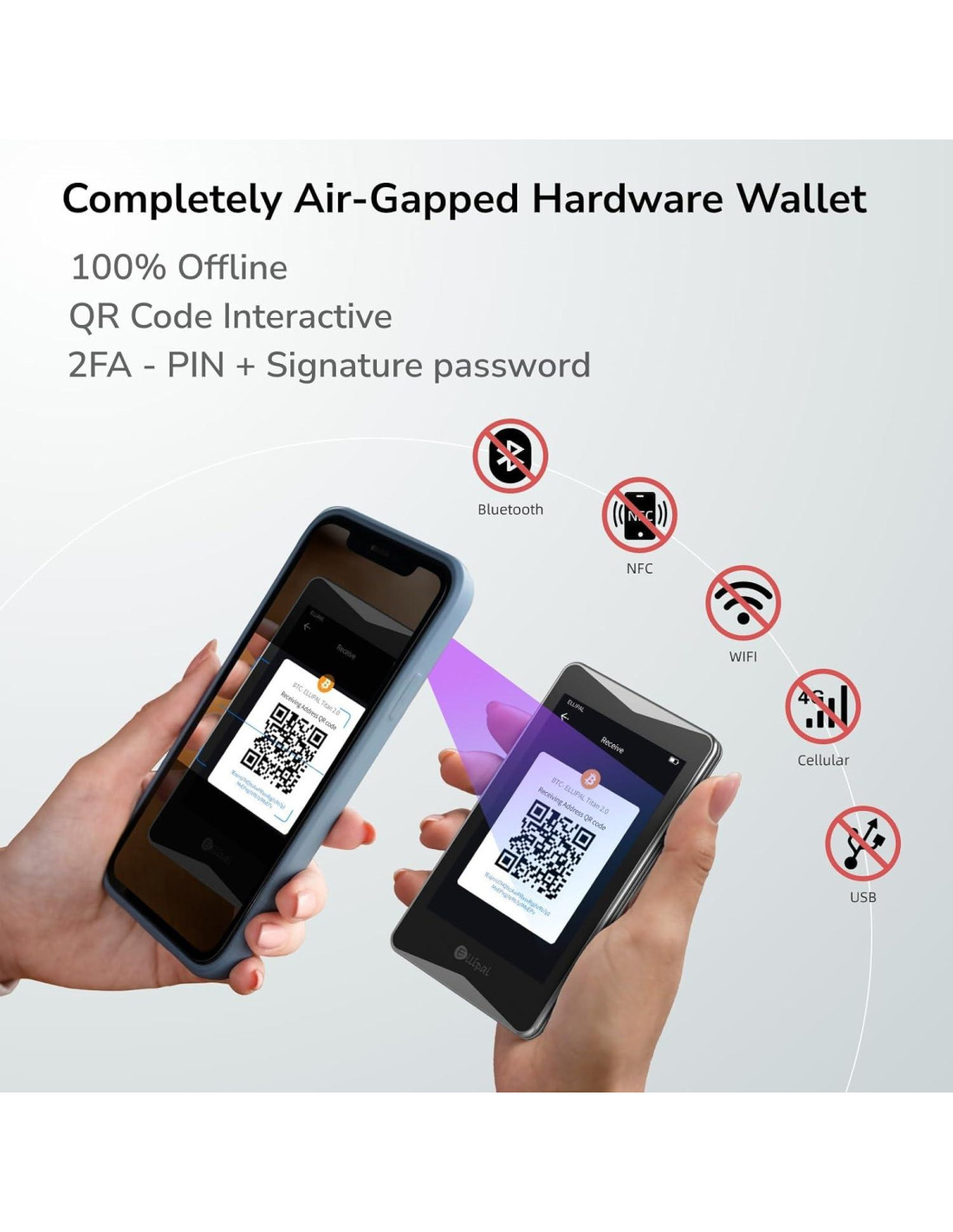 - [Protección Definitiva con Diseño Aislado y Totalmente Aislado de Internet] ELLIPAL Titan 2.0 utiliza tecnología aislada para una seguridad inigualable frente a ataques remotos y en línea. El elemento seguro (certificado CC EAL5+) protege los activos de hackeos. Sin WiFi, Bluetooth, USB o conexiones de red, las transacciones se realizan de forma segura a través de códigos QR. No se pueden robar datos ni controlar el dispositivo de forma remota. Con las claves privadas completamente aisladas, las criptomonedas permanecen protegidas.
