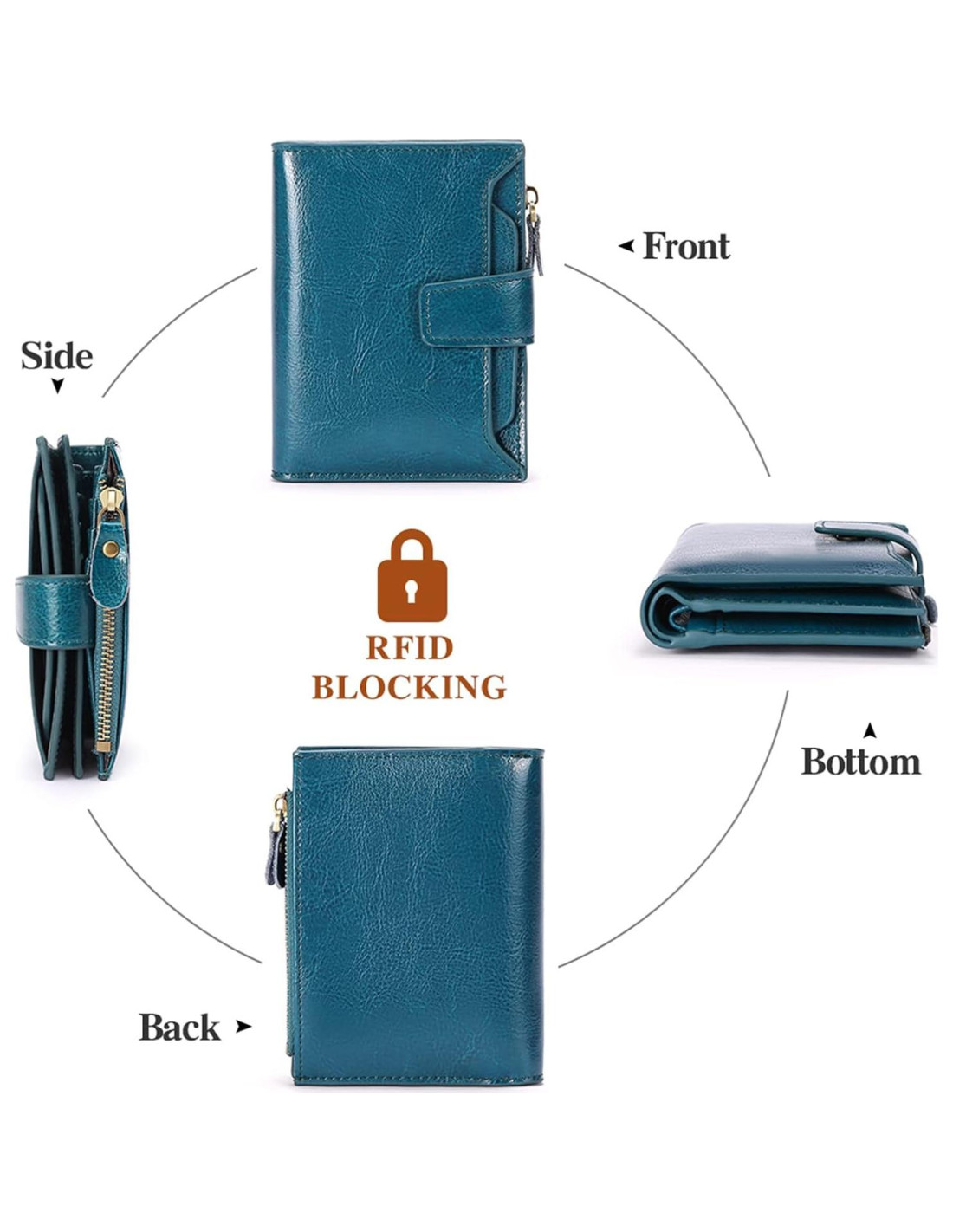 - 4 [Material de alta calidad] - - Hecho de cuero sintético de alta calidad. Cuanto más tiempo lo usamos, más bonito se vuelve. Compacto pero lo suficientemente pequeño como para caber en el bolsillo de tu abrigo o en tu bolso cruzado. La mejor opción para evitar billeteras voluminosas