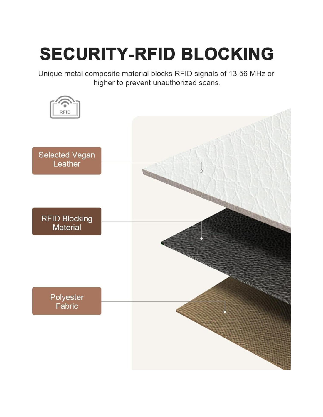 - La cartera de muñeca de cuero cuenta con material bloqueador patentado, manteniendo tus detalles personales y de tarjetas de crédito seguros al viajar o comprar