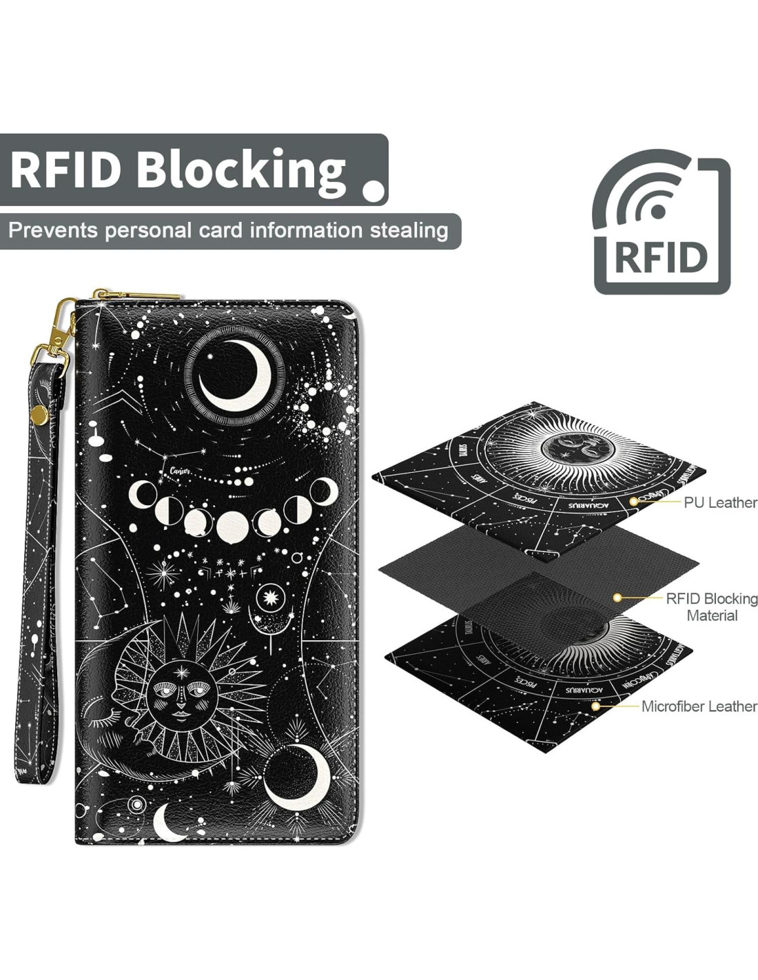 - Bloqueo RFID: Billetera para mujeres con tecnología avanzada de bloqueo RFID, puede bloquear lectores RFID no deseados de obtener información privada sensible. Siempre protege tu tarjeta, información de identificación de hackers y ladrones de datos mientras viajas o compras
