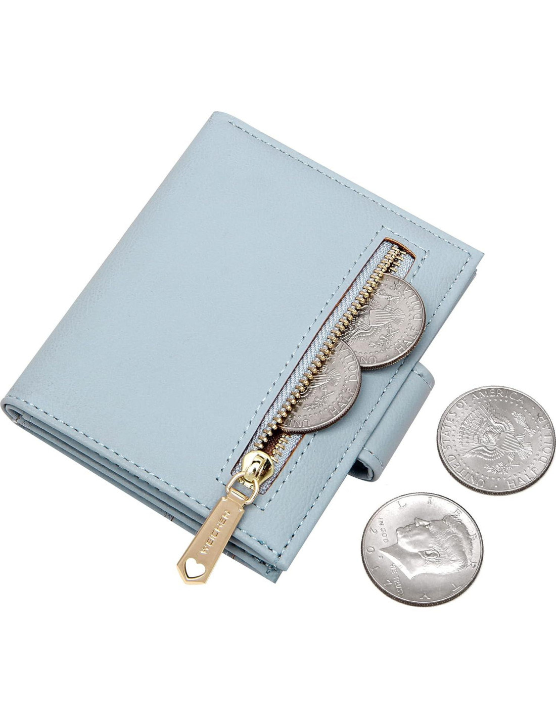 - [Práctica y Funcional] El diseño bifold expande toda la capacidad de la pequeña cartera para tarjetas de crédito. Verás 12 ranuras prácticas para tarjetas cuando despliegues la cartera, tus tarjetas de crédito, tarjetas de débito, tarjetas VIP y otras tarjetas se pueden almacenar fácilmente. Puedes llevar algo de efectivo/billetes/cambio en el compartimento de efectivo y algunas monedas en el bolsillo con cremallera, así que es una cartera pequeña perfecta.
