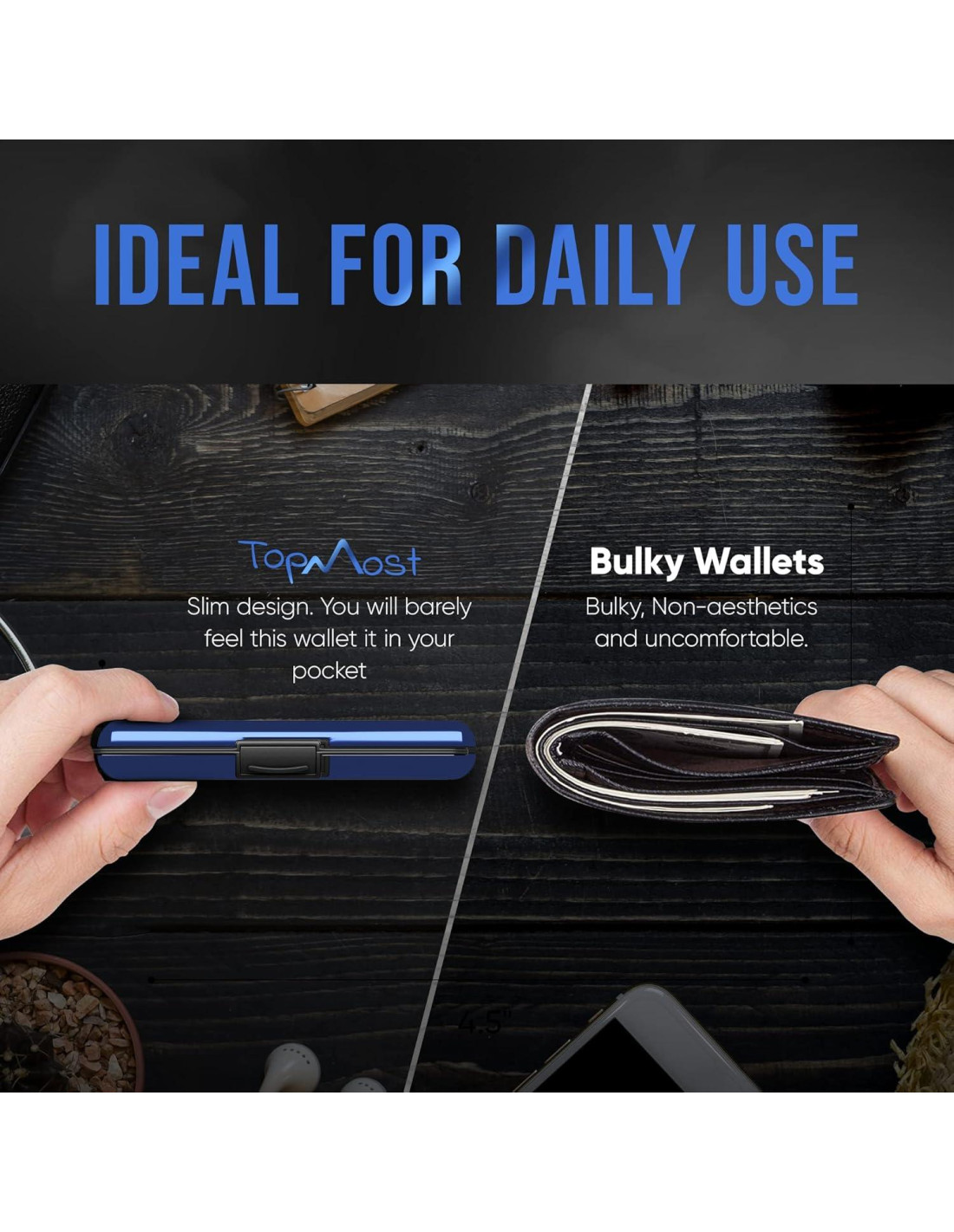 - ESTILOSA Y MODERNA - Estas billeteras modernas y ligeras están disponibles en cuatro impresionantes tonos metálicos: Negro, Plata, Azul Púrpura y otros diseños distintos.