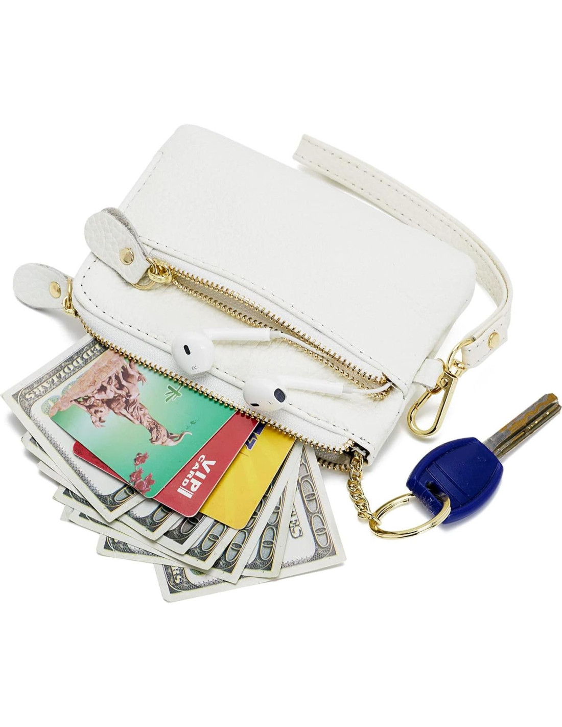- Diseño único: Gran apertura para fácil acceso, con correa para la muñeca. Cremalleras de metal dorado de alta calidad, suaves, resistentes y a la moda. Cadena/anillo para llaves incorporado, no perderás tus llaves ya que están sujetas a la billetera.