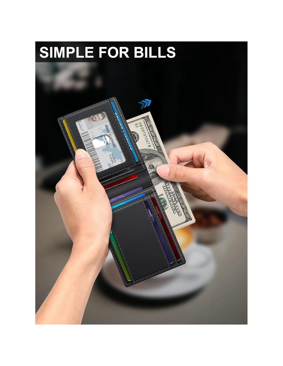 - VENTANA TRANSPARENTE PARA ID: Las billeteras de cuero para hombres incluyen una ranura transparente para ID en el interior, perfecta para almacenar tu ID, insignia de trabajo, licencia de conducir, tarjeta de acceso o pase de transporte.