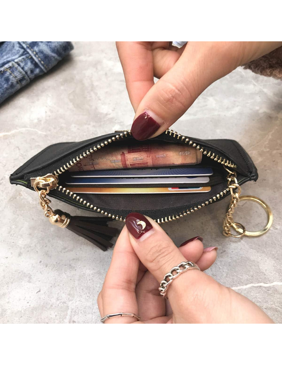 - Minimalista pero funcional y práctico: 3 ranuras para tarjetas en el interior, un bolsillo con cremallera para monedas, efectivo, cambio y accesorios diarios, y un anillo para llaves.