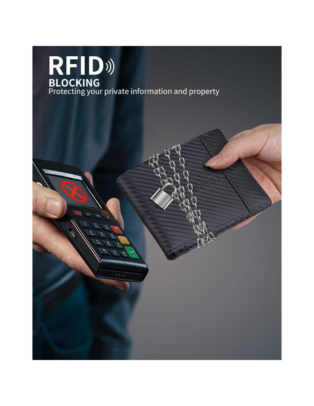 - Bloqueo RFID: Equipado con tecnología segura RFID avanzada, hecho de un compuesto metálico único, diseñado específicamente para bloquear señales RFID de 13.56 MHz y superiores, protege tu información de escaneos no autorizados. Protege tu propiedad y asegura tu tranquilidad