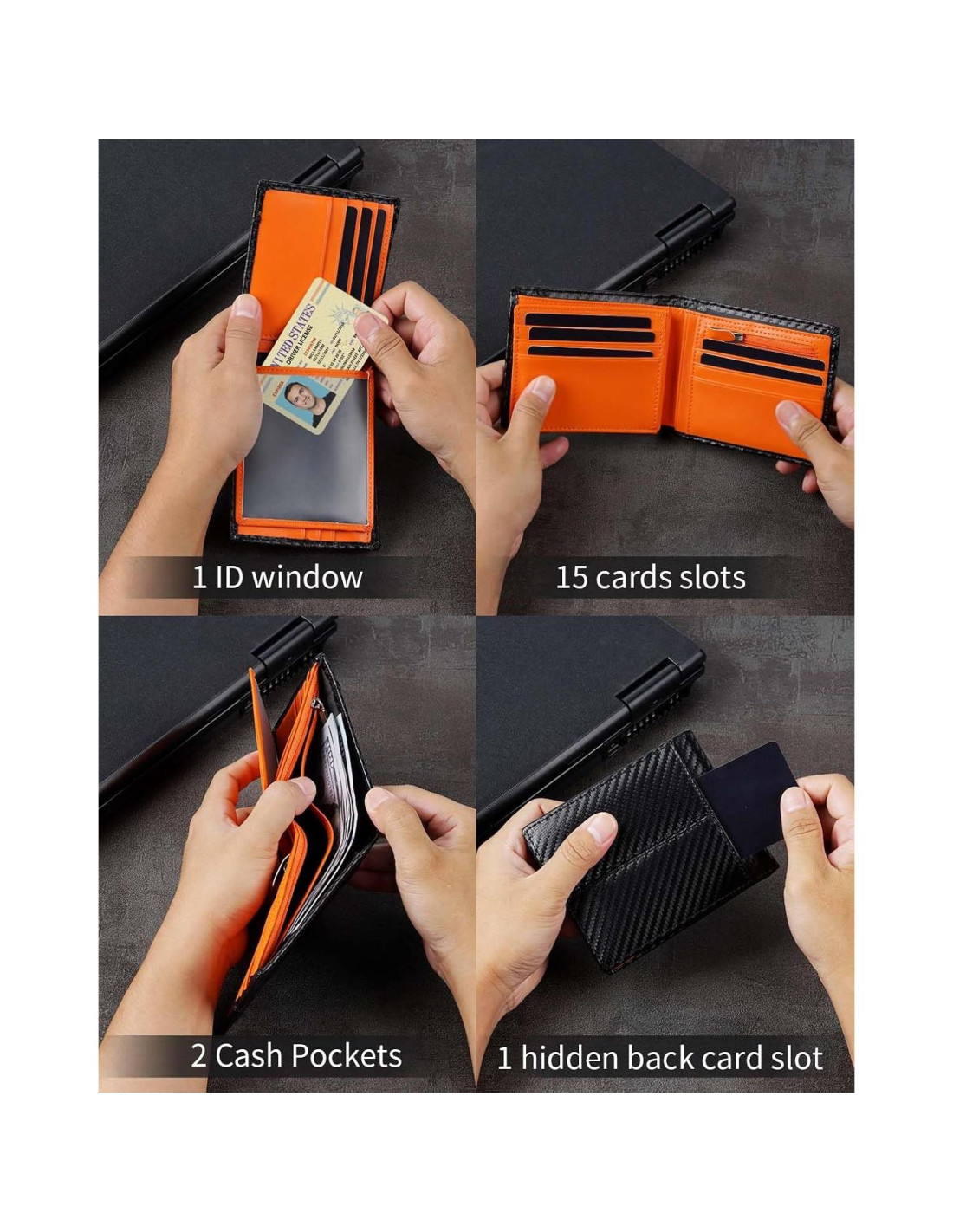 - Ideal para Él: La billetera es adecuada para hombres de todas las edades, ya sea en negocios o en ocio, puede demostrar el encanto en cualquier ocasión. Con un elegante empaque de caja, seguramente será apreciada por padres, abuelos, hermanos, amigos y esposos para impresionar