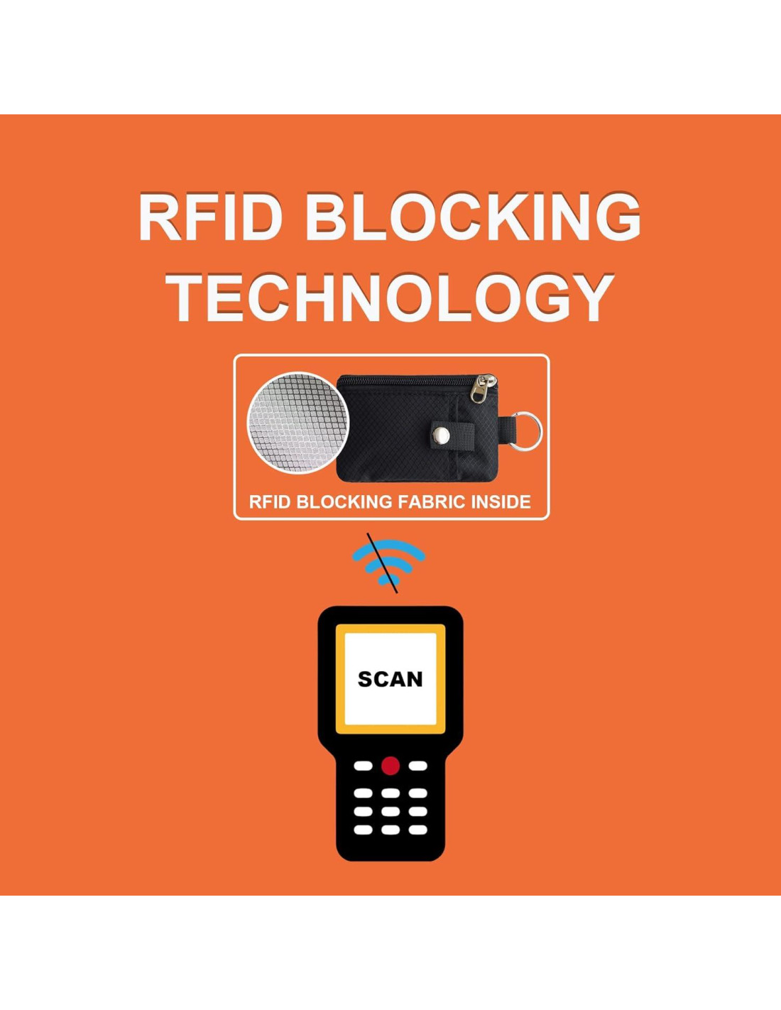 - Diseño de doble cremallera con bolsillo frontal RFID y compartimento trasero práctico para tarjetas, efectivo, esenciales.