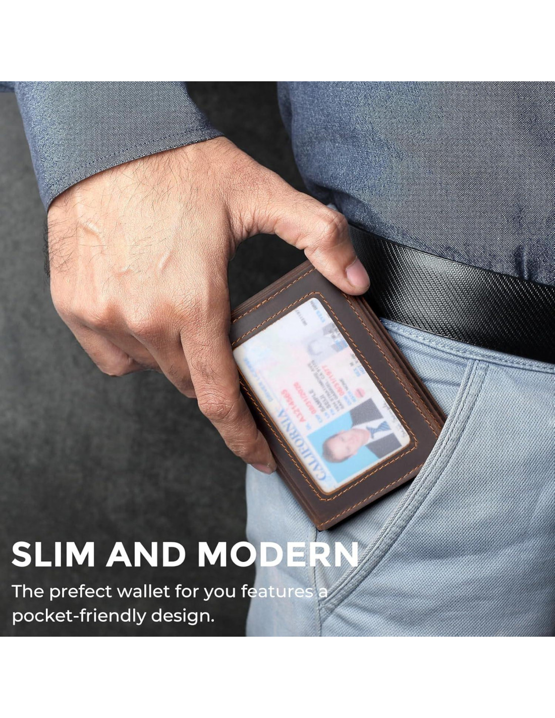 - TAMAÑO COMPACTO: Dimensiones: 3(L)*4.1(H) pulgadas (7.5(L)*10.5(H) cm), 5*ranuras para tarjetas, 1*ventana para ID, 1*ranura para dinero. Billetera pequeña que se adapta fácilmente a tu bolsillo delantero o trasero.