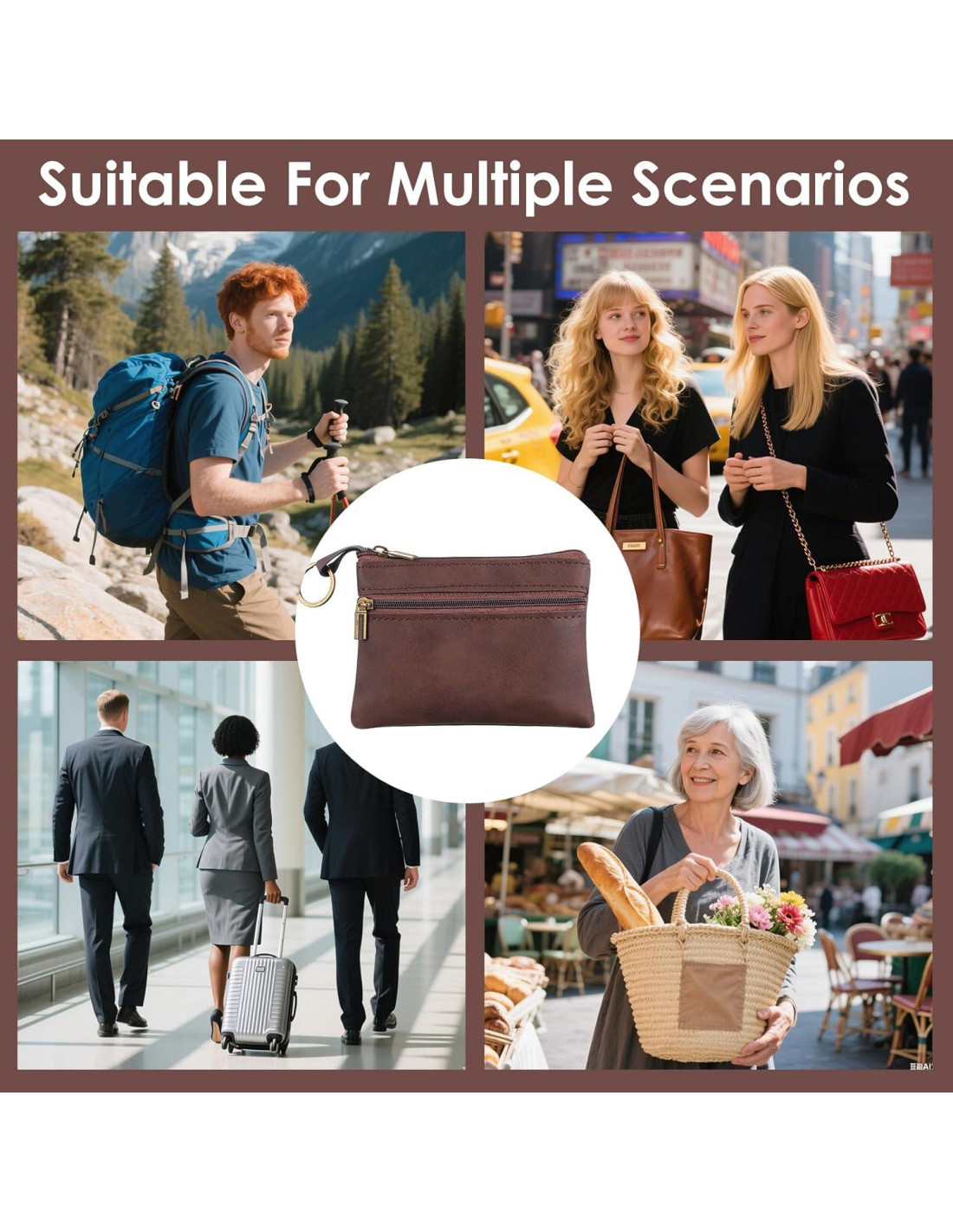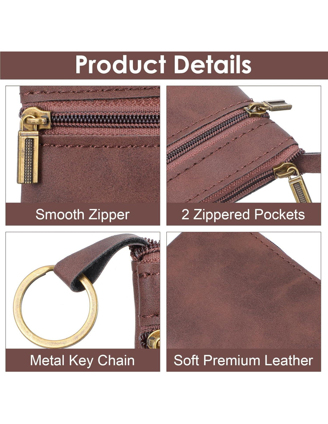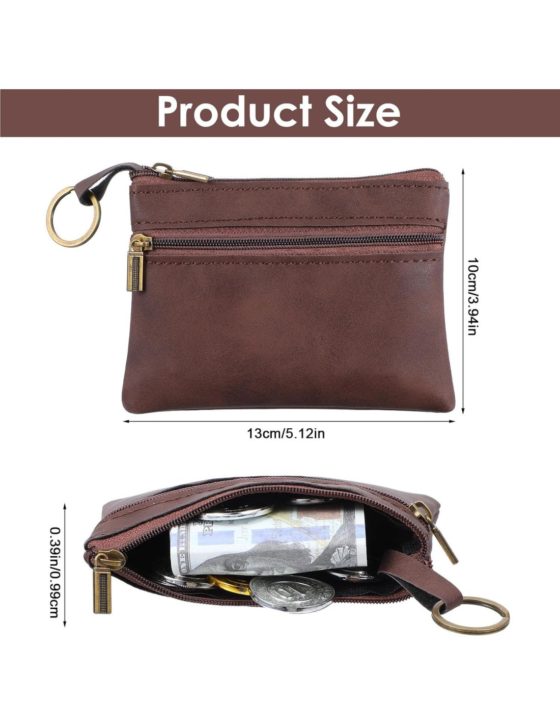 - Multi-funcional y Versátil Diseñado tanto para mujeres como para hombres, este soporte de tarjetas es perfecto para organizar monedas, billetes, tarjetas de crédito y llaves. Su estilo marrón clásico complementa cualquier atuendo, convirtiéndolo en un accesorio versátil que transita sin esfuerzo de ocasiones casuales a formales.