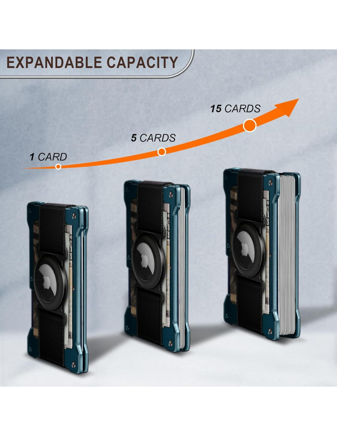 - NUEVO DISEÑO--2 bandas extensibles para conectar y sostener las placas de aluminio frontal y trasera con flexibilidad confiable, es expandible para sostener 15 tarjetas y un par de billetes con mejor fiabilidad en comparación con otros que solo tienen una banda elástica, ideal para usuarios frecuentes de tarjetas;