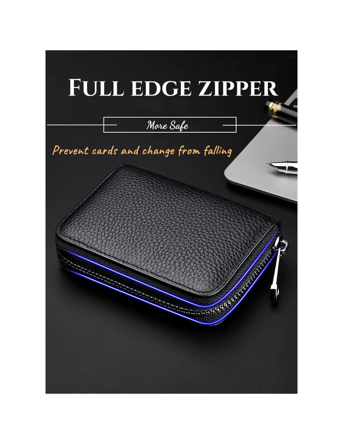 - Billetera de Cuero: billetera de tarjetas de crédito 100% de cuero, hecha del mejor cuero de vaca, suave, lisa y duradera. Cierre de cremallera suave facilita el acceso y previene que los objetos se caigan.