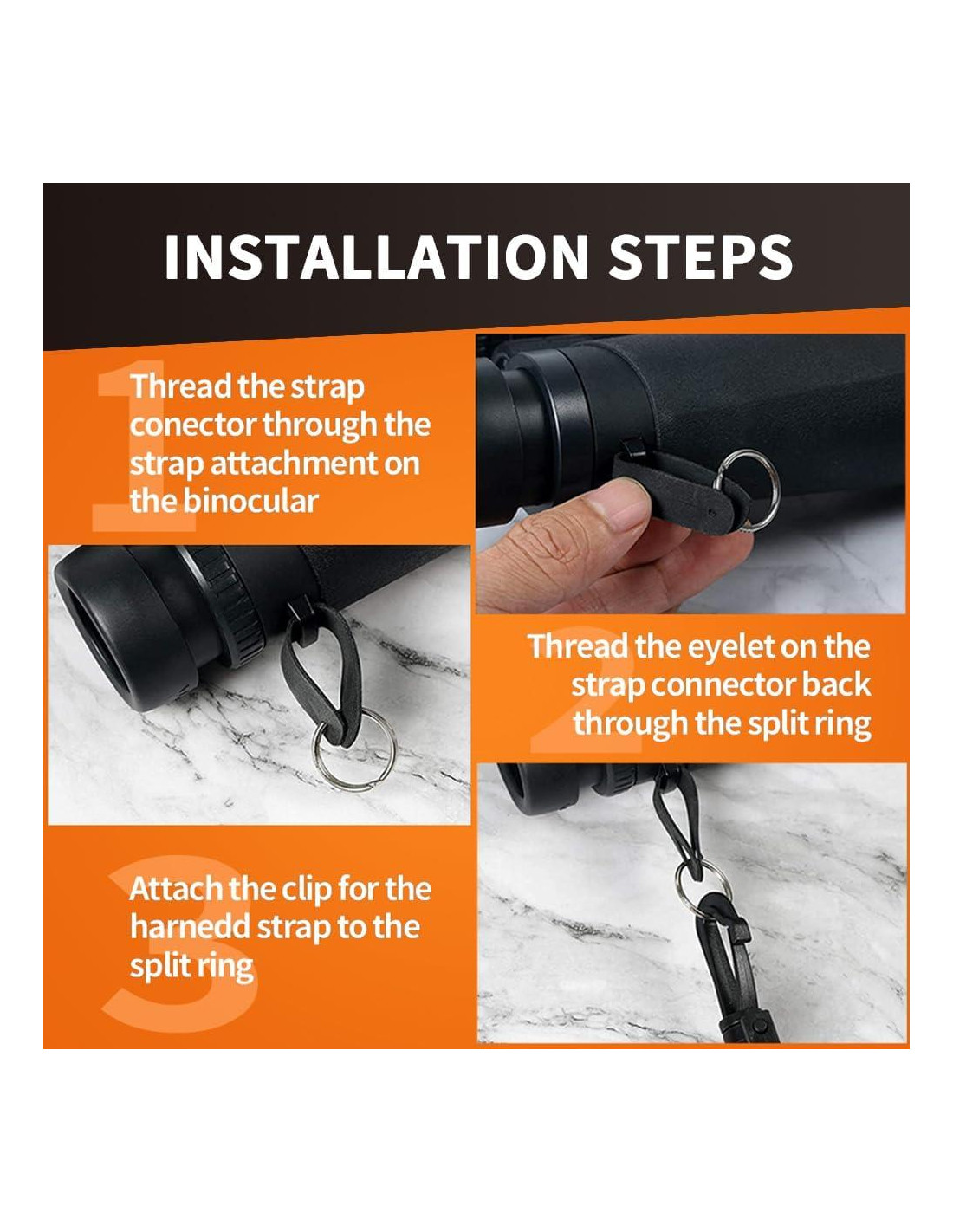 - MATERIAL DURADERO - El arnés de binoculares para caza es un cinturón de nylon resistente con dos agujeros para botones en cada extremo, adecuado para la mayoría de las marcas de binoculares, el arnés de correa para binoculares es ligero y fuerte