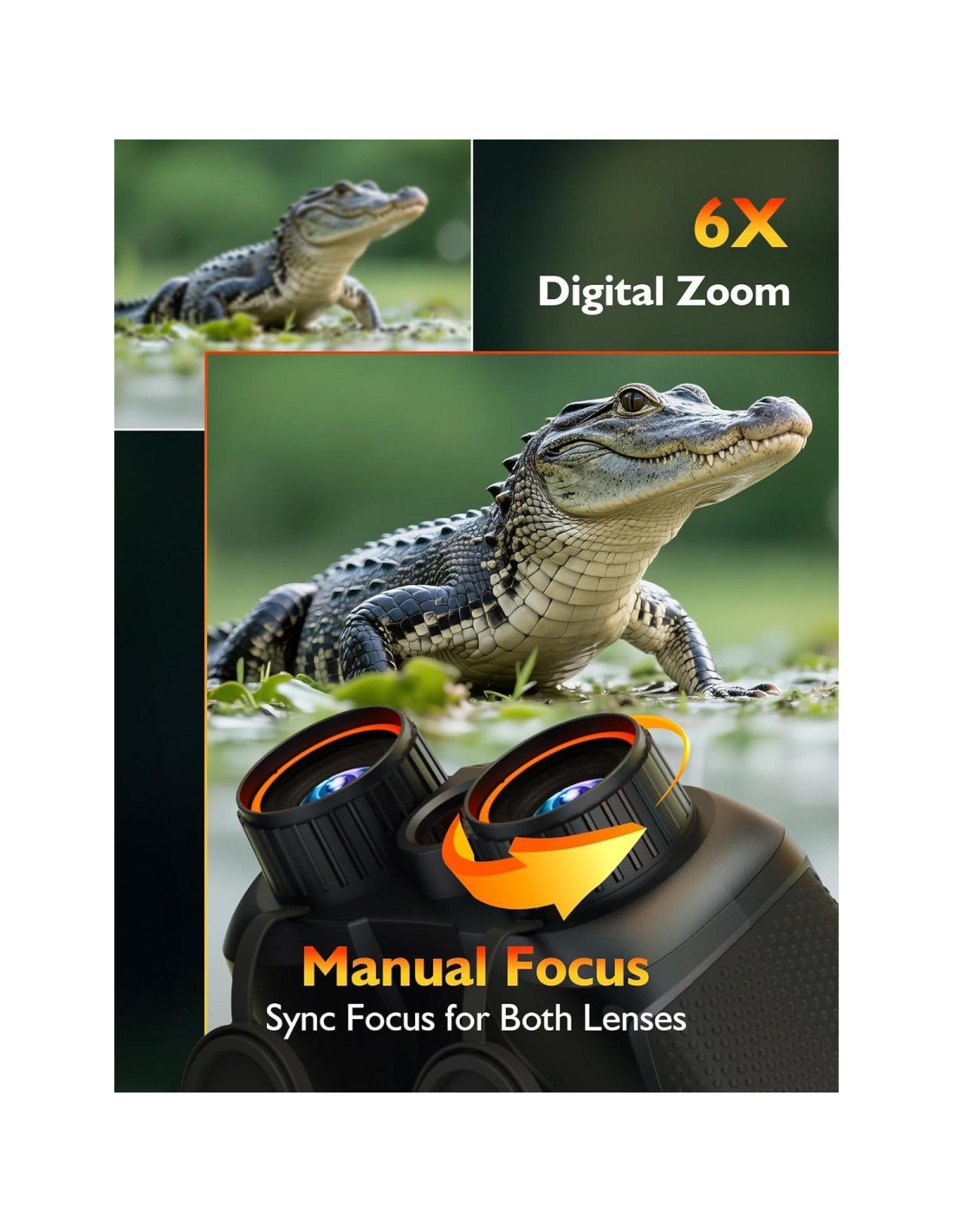 - Claridad 3D FHD Superior: Disfruta de imágenes nítidas con nuestra tecnología 3D FHD. Estos binoculares de visión nocturna para adultos ofrecen una resolución excepcional para la visión nocturna al aire libre, asegurando una observación precisa incluso en entornos totalmente oscuros.
