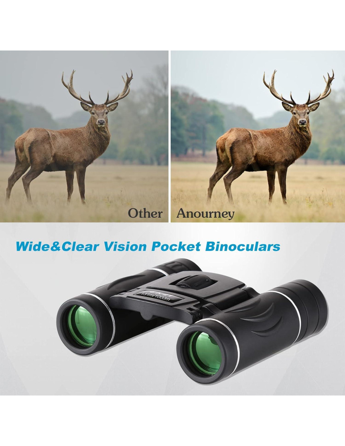 - [Binoculares de Bolsillo] Los binoculares Anourney son más ligeros que los teléfonos móviles, 0.37lb (0.17kg) no añadirán peso extra a tu mochila, diseño plegable y portátil perfecto para llevar a cualquier lugar: ópera, concierto, teatro, espectáculos, viajes, senderismo, vida silvestre, observación de aves, partido de fútbol, deportes al aire libre. ¡Con una mano!