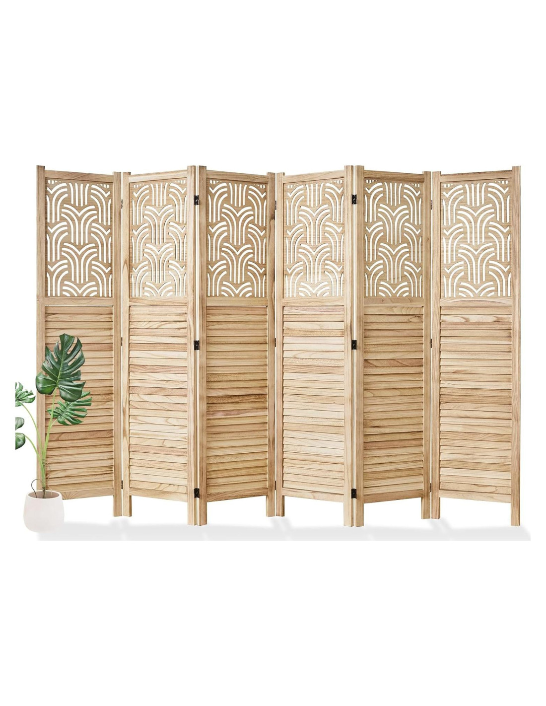 - {DISEÑO ELEGANTE} La pantalla de privacidad está hecha con una exquisita artesanía, la parte superior tiene un diseño tallado y la parte inferior tiene un diseño de lamas, clásico y a la moda. Todo muestra un temperamento elegante y delicado, ya sea como decoración o separación, puede desempeñar el papel de embellecer y realzar el temperamento del espacio.