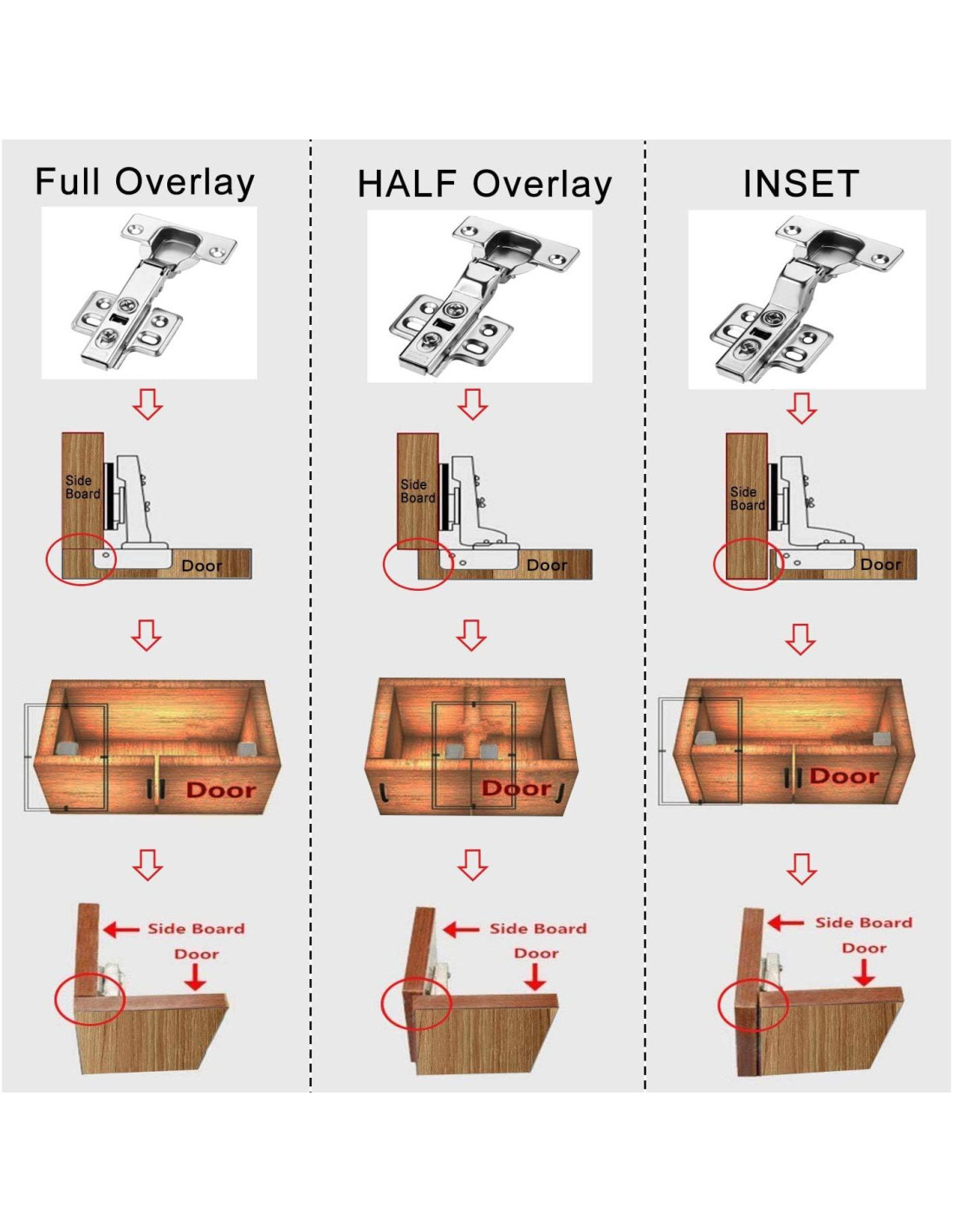 - [Adecuado para Gabinete Sin Marco] ángulo de apertura de 110 grados, bisagras de placa de montaje de cuatro agujeros;