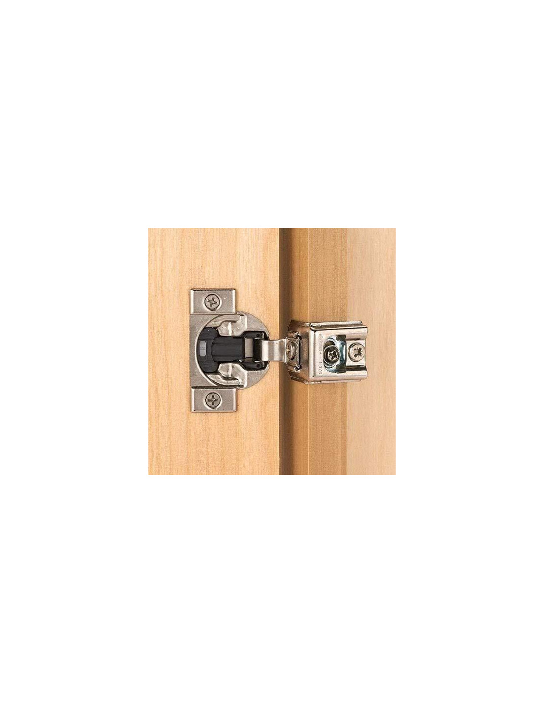Blumotion compacto combina el cierre más suave de Blum con su bisagra más pequeña. La innovadora tecnología de cierre suave Blumotion está integrada directamente en la copa de la bisagra. Esto mantiene el tamaño compacto de la bisagra mientras asegura un cierre silencioso y sin esfuerzo, independientemente del peso de la puerta o la velocidad de cierre. Para puertas pequeñas o ligeras, la función Blumotion se puede desactivar en una bisagra, y el ajuste tridimensional ayuda a asegurar que las puertas encajen perfectamente. Con su pequeño perfil, costo económico y acción de cierre suave. Está construida de acero niquelado y tiene un ángulo de apertura de 110 y un montaje de bisagra envolvente a marco (utilizar un tornillo de instalación de cabeza de truss). Esta bisagra en particular está diseñada para un solapamiento de 1-1/4 pulgadas (3.18 cm) con un accesorio de bisagra atornillado a la puerta.