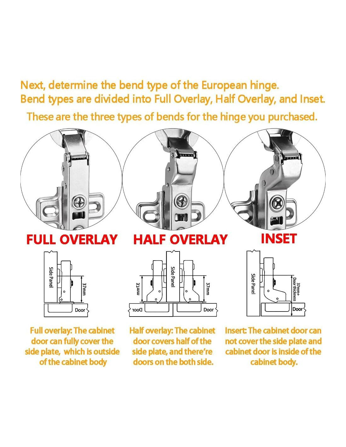 - Bisagra de Armario Inset-el borde de la puerta del armario está incrustado dentro del armario. La bisagra de cocina oculta de estilo euro SOLO es adecuada para armarios sin marco.
