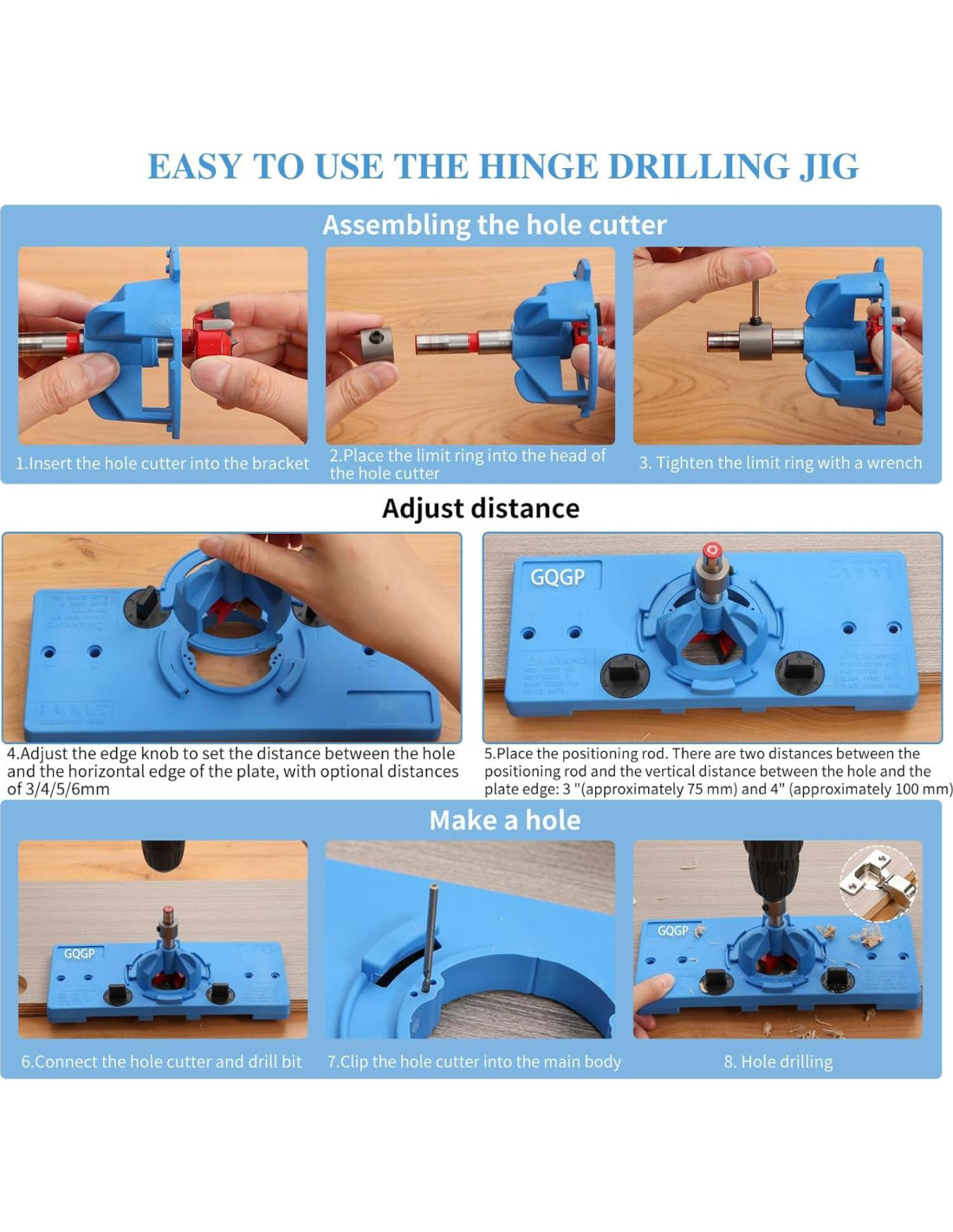 1, plantilla de bisagra de armario proporciona 3mm, 4mm, 5mm, 6mm compensaciones de bisagra oculta. Perfecto para la instalación de bisagras ocultas comunes