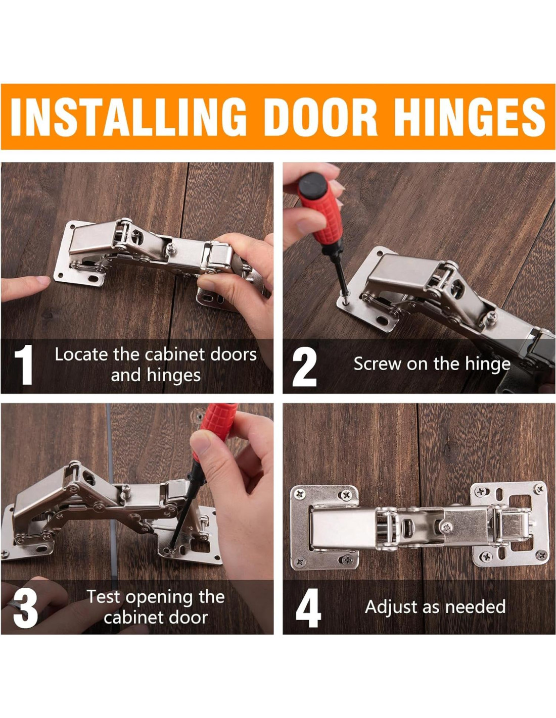 - Fácil Instalación con Tornillos Incluidos: Cada juego de bisagras viene con todos los tornillos necesarios, haciendo que la instalación sea sencilla y sin complicaciones. Ya seas un profesional o un entusiasta del bricolaje, apreciarás la facilidad de instalar estas bisagras.
