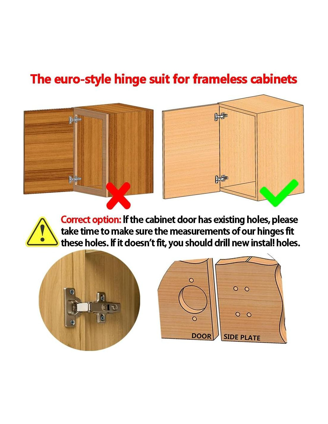 - Bisagra de Gabinete de Superposición Completa-Los bordes de las puertas del gabinete están perfectamente alineados con los bordes del gabinete. La bisagra de cocina oculta de estilo euro SOLO es adecuada para gabinetes sin marco.