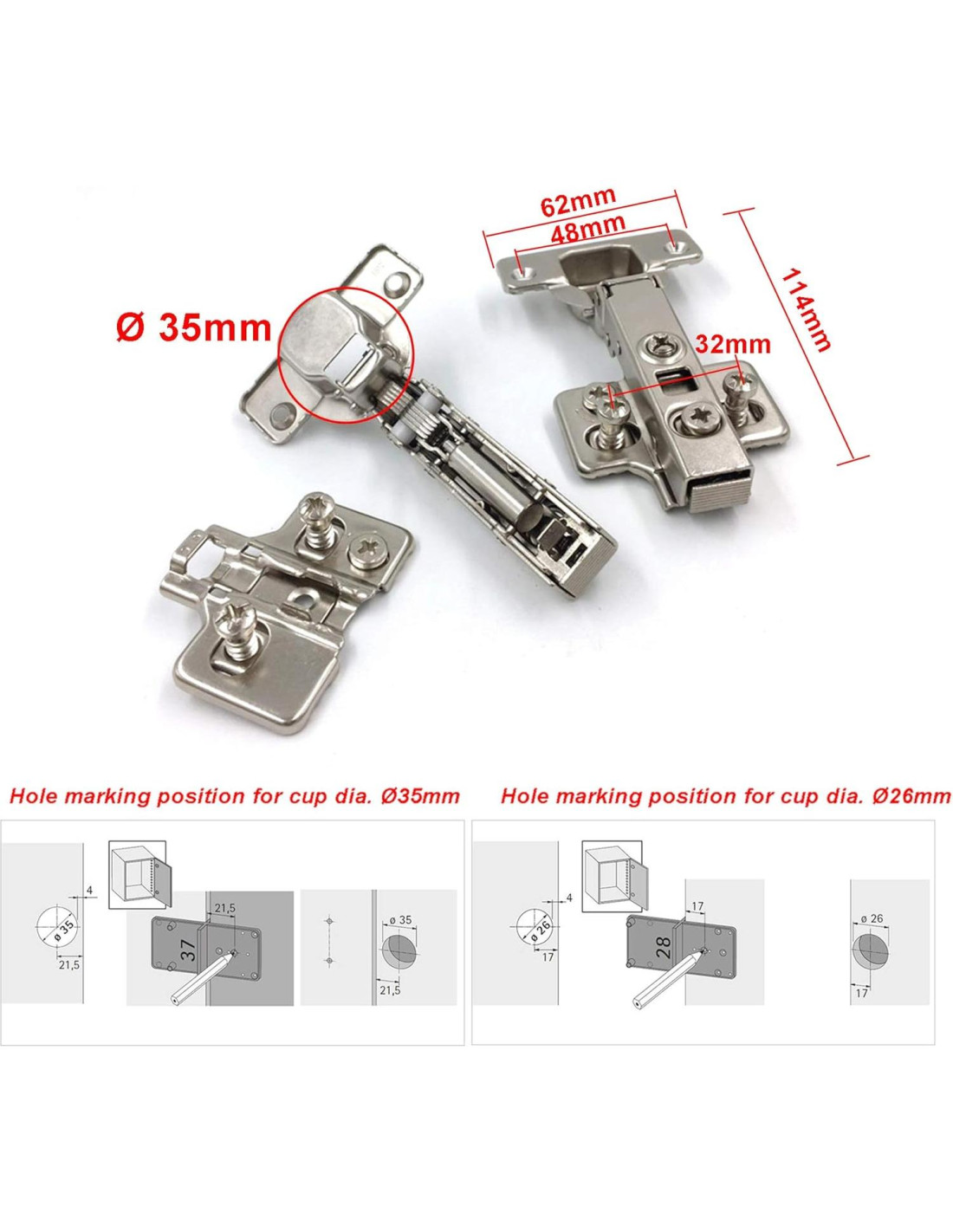- Para grosor de puerta de 16-19mm; Diámetro del vaso 35mm (tamaño estándar); Profundidad del vaso 11.5 mm