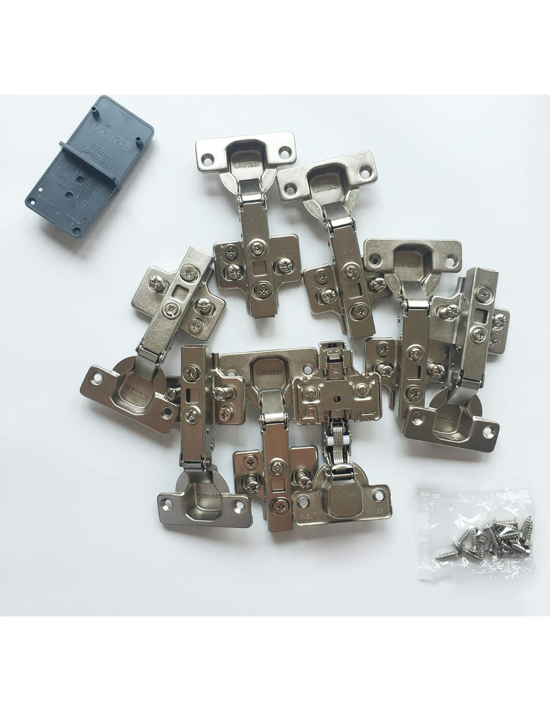 Detalles del producto >Tipo: Bisagra de montaje de superposición total LOOTICH, bisagras automáticas de cierre suave para tipo europeo >Con cierre suave automático (amortiguador) >Ángulo de apertura: 110 grados >Diámetro del vaso de perforación: 35mm (tamaño estándar) >Profundidad mínima del vaso de bisagra: 11.5 mm >Dimensiones de perforación para fijación del vaso: Patrón de perforación (48mm / 6.5mm) >Para grosor del panel lateral: 16mm (mín.) - 19mm (máx.) >Para grosor de la puerta: 16mm (mín.) - 19mm (máx.) >Curvatura de la bisagra: 0 mm >Material: Acero inoxidable >Acabado: Vaso y brazo de acero prensado niquelado >Opción de montaje de puerta: Superposición total / Tope de esquina >Tapa de cubierta para carcasa: No >Ajuste: Ajuste lateral +/- 2.5 mm, ajuste de altura +/- 2 mm, ajuste de profundidad -2 mm a +2 mm Placa de montaje >Ajuste tridimensional de las puertas del armario en profundidad, ancho y altura >con tornillos especiales pre-montados >Espaciado de tornillos: 32mm Contenido del paquete >bisagras: Paquete de 8 >con placa de montaje cruzada y tornillos Dimensiones importantes y especificaciones de espacio en dibujos y tablas se calculan utilizando configuraciones de fábrica y para distancia de placa de montaje 0 mm