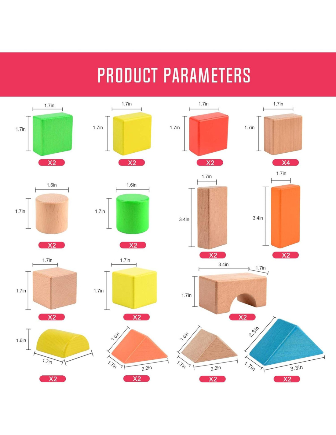 - LA PRIORIDAD DE MAMÁ ELIGE: Contiene 32 piezas de un gran conjunto de bloques de madera apilables, 1 bolsa de transporte, paquete con caja. Material de madera de alta calidad y no tóxico, los bloques de construcción de madera para niños siempre han sido un juguete indispensable en su crecimiento. Inspiran a los niños a diseñar, inventar y crear. Este conjunto viene con 32 bloques en 7 colores diferentes y 8 formas.