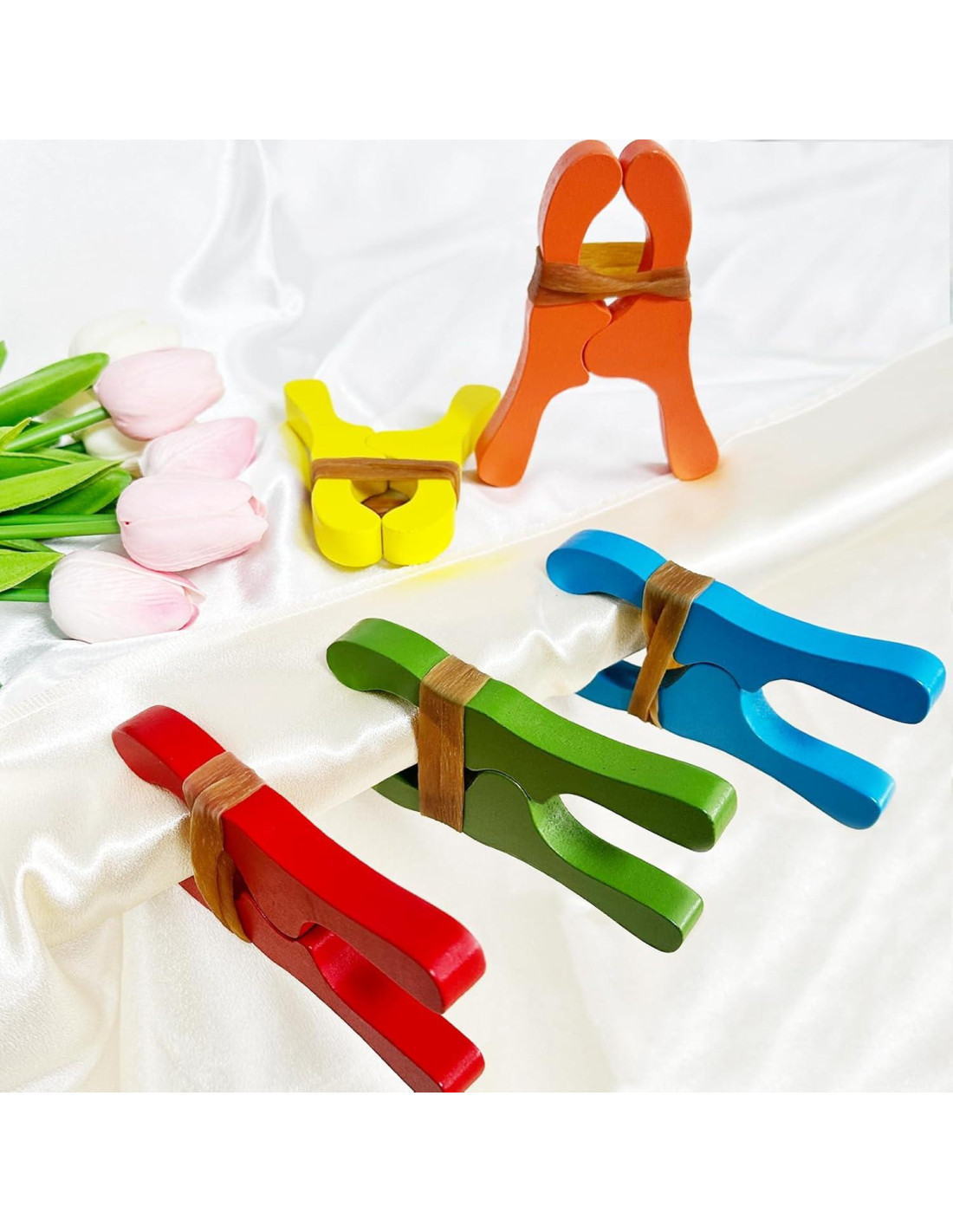 Estos clips de colores brillantes son la herramienta perfecta para que los niños usen su imaginación al construir castillos con bloques y sedas, nuestros clips están hechos de madera de alta calidad, naturalmente no tóxica y no tienen partes afiladas, lo que los hace perfectos para ejercitar las manos y la imaginación de los niños.