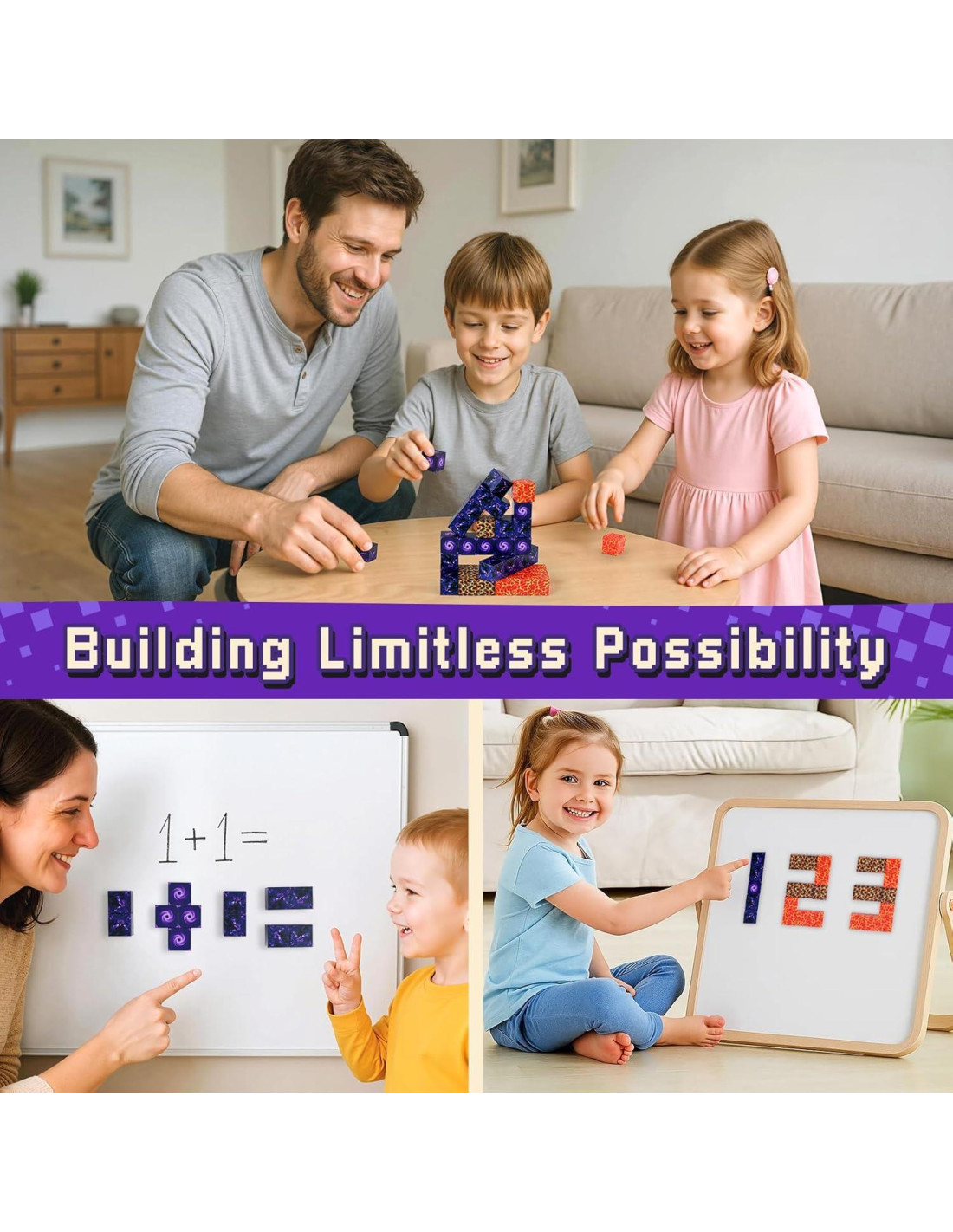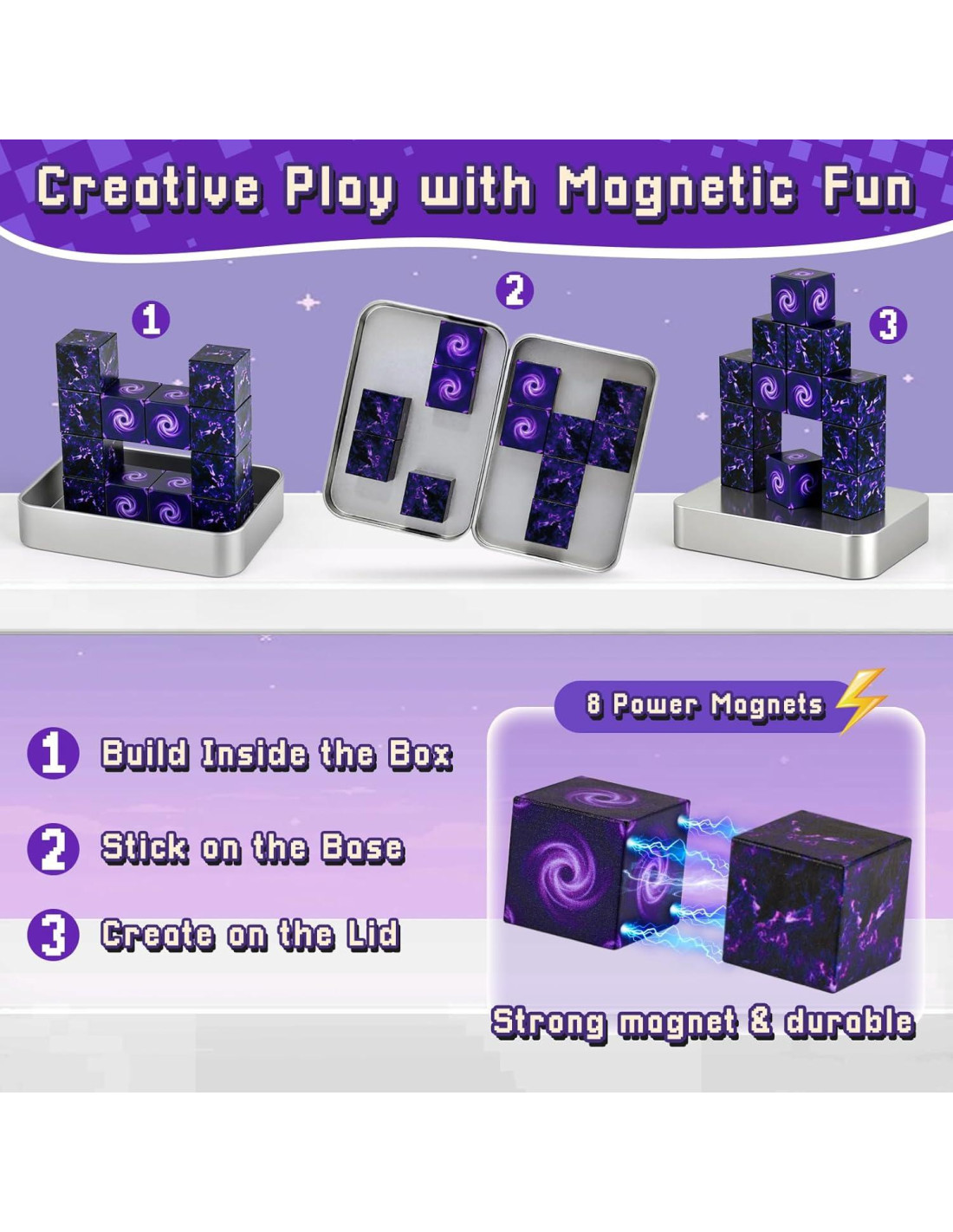 - [Construye un Mundo de Portal de Fantasía] : Este conjunto de bloques de construcción magnéticos incluye 12 cubos de estilo píxel de alta calidad que se unen para formar un portal. Con infinitas posibilidades de construcción, los niños pueden usar su imaginación para crear estructuras personalizadas
