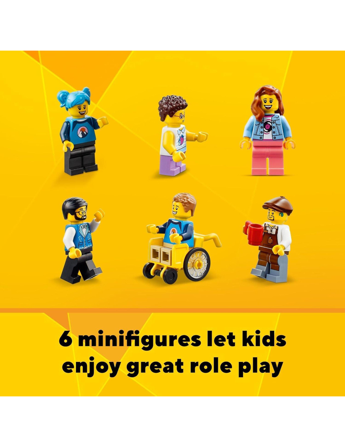 - 6 minifiguras - Incluye un trabajador de cafetería, un recepcionista de hotel, un cantante, un usuario de silla de ruedas, un niño y un empleado de tienda. El cabello y los torsos de los personajes se pueden cambiar para mayor diversidad