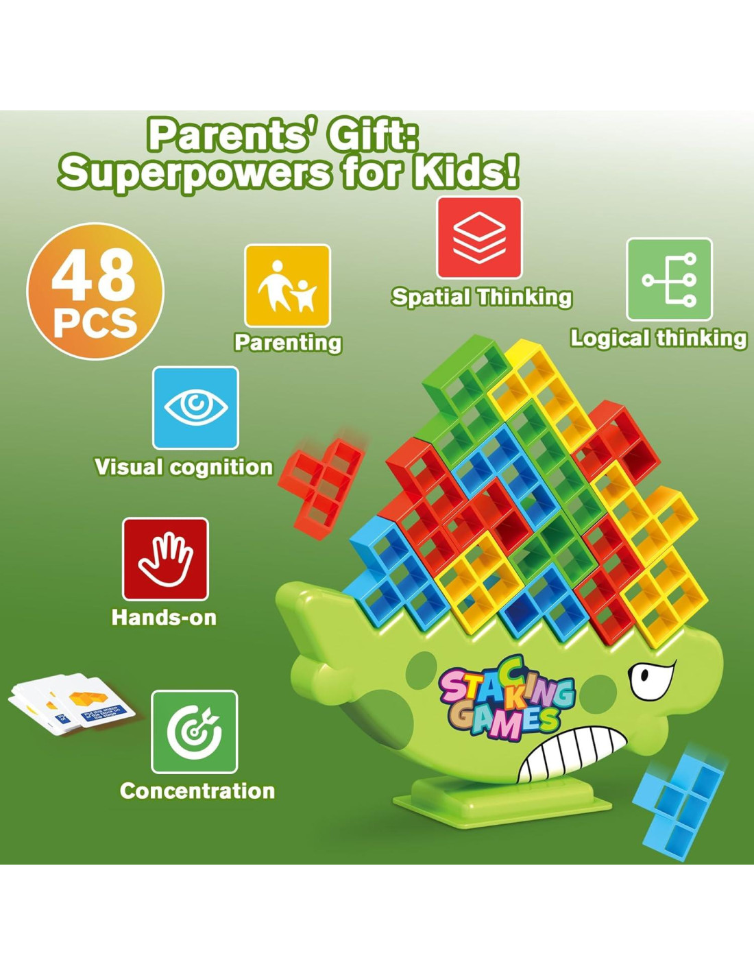 - Modos de Juego Versátiles para Todas las Edades Juega solo para practicar habilidades de apilamiento o desafía a un amigo usando las cartas de juego incluidas. Los jugadores avanzados pueden participar en una versión basada en estrategias que combina la diversión de un juego de equilibrio con el pensamiento estilo Tetris, ideal para niños mayores e incluso adultos.
