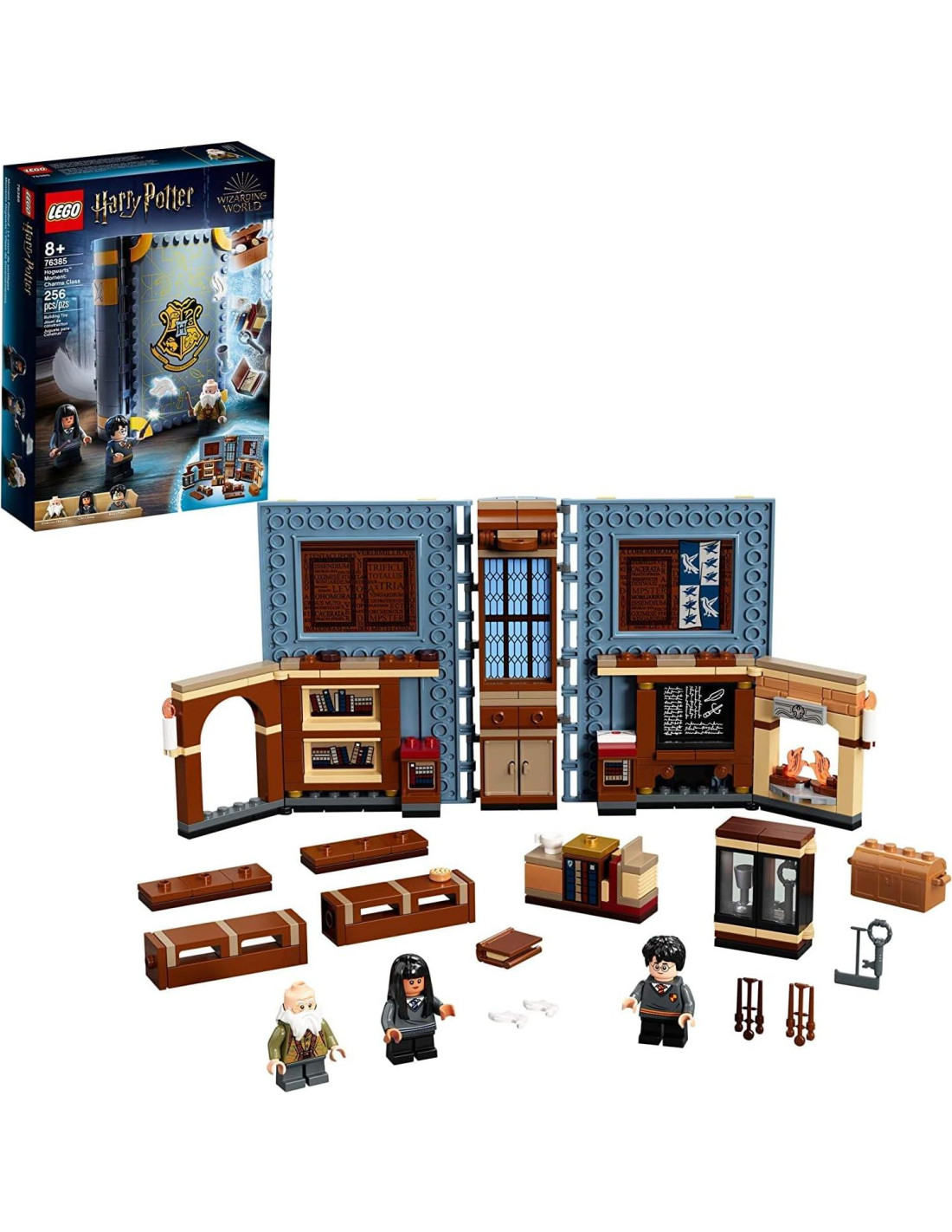 - LEGO Harry Potter Hogwarts Moment: Clase de Hechizos (76385) es un libro de juego construido con ladrillos que se abre para revelar la lección de hechizos del Profesor Flitwick de las películas de Harry Potter
