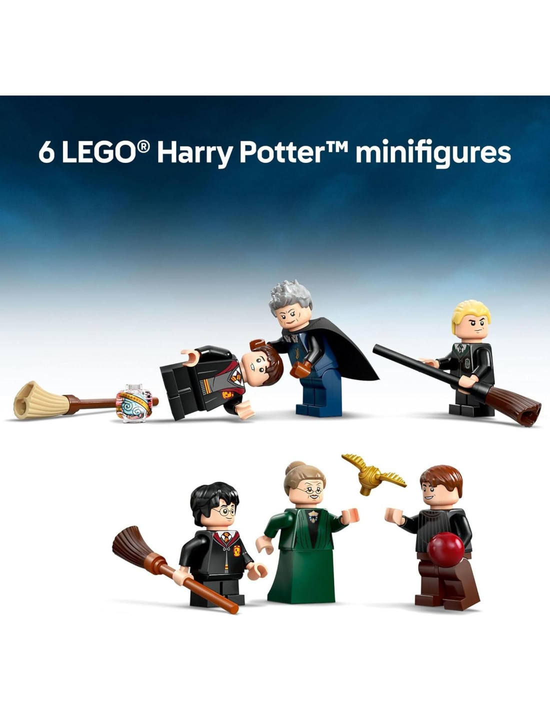- MINIFIGURAS DE PERSONAJES POPULARES - Este set de construcción incluye a Harry Potter, Neville Longbottom, Draco Malfoy, Profesora McGonagall, Madam Hooch y Oliver Wood