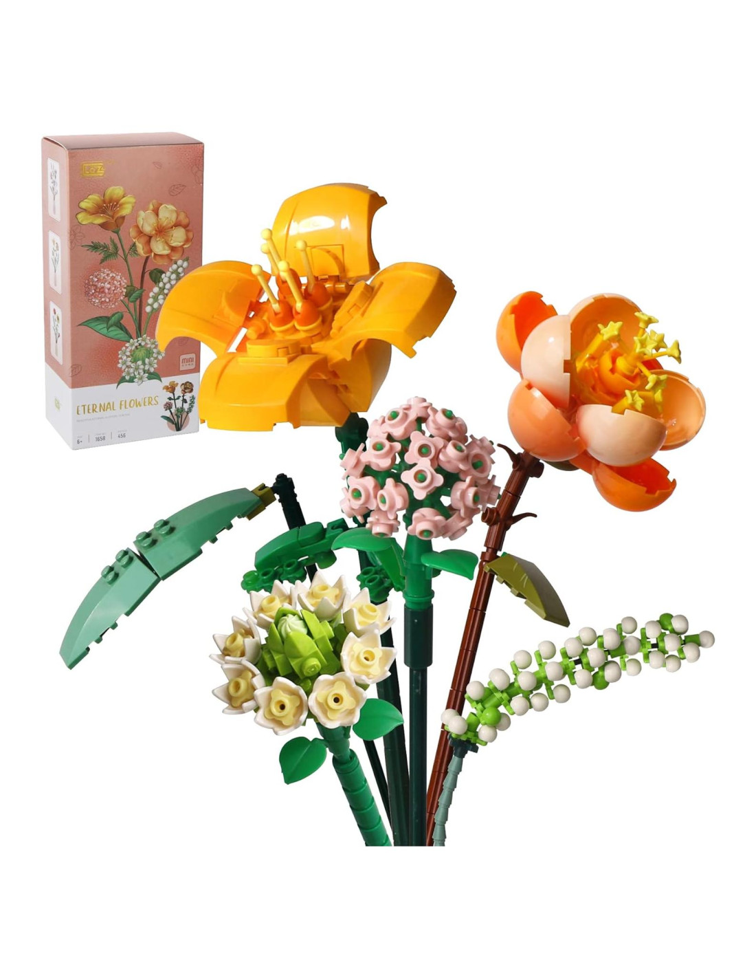 - [Ramo de Mini Plantas] El ramo está compuesto por 456 bloques, que son coloridos, interesantes, románticos y enérgicos. También está equipado con instrucciones de color. Bajo la guía del manual claro, puedes seguir los pasos de instalación y construir los elementos fácilmente.