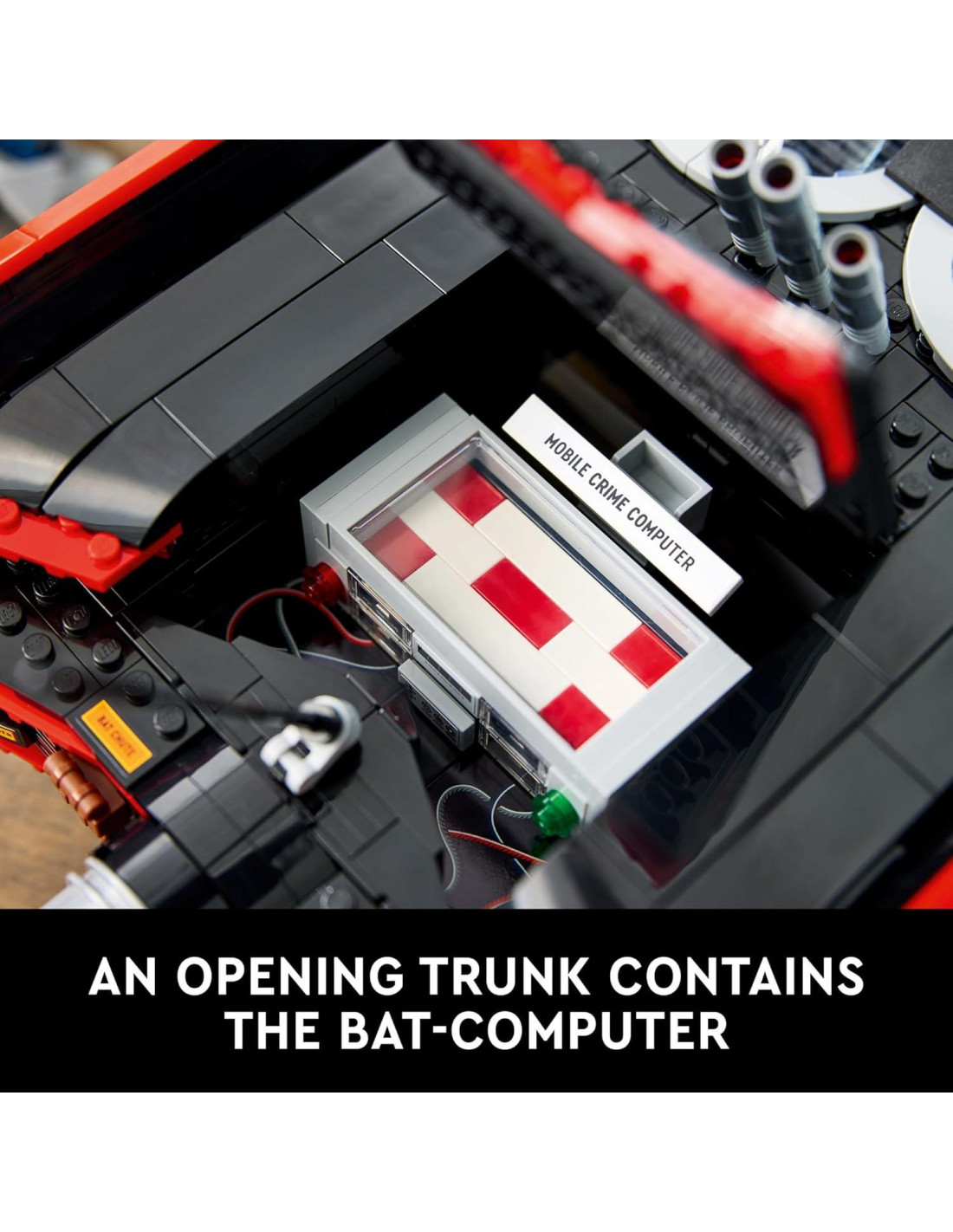 - Vehículo LEGO Batman - El auto cuenta con un parabrisas moldeado, ruedas rotativas, decoraciones auténticas y un maletero que se abre que contiene la Bat-Computadora